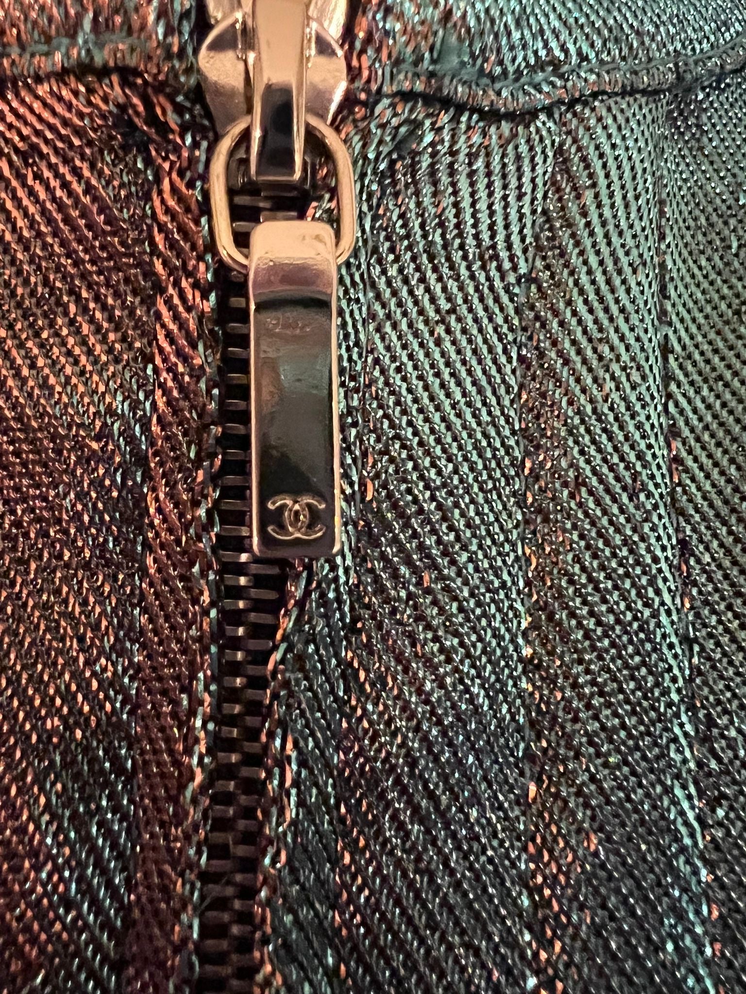 This just might be one of my top 3 favorite Chanel outfits! The fabric is actually made to reflect completely different colors depending on the light-fall, beautiful!