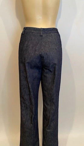Rare Vintage Chanel 99P, 1999 Spring Denim Blue Cotton Jeans. These jeans have a fly front, top stitching Cotton denim. “Chanel, Paris” tag on small pocket.