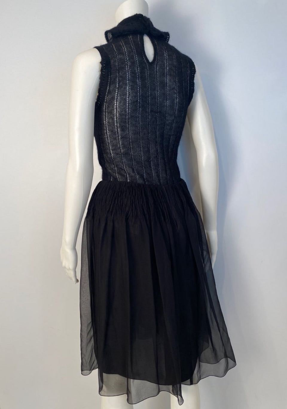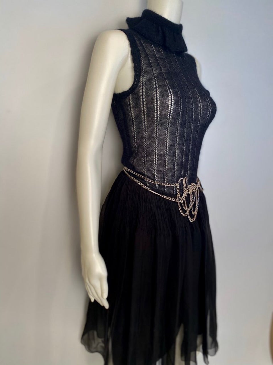 Shown with a vintage Chanel Yellow jacket, a sleeveless mohair/nylon sweater, and Chanel Belt sold separately under “shop all”.