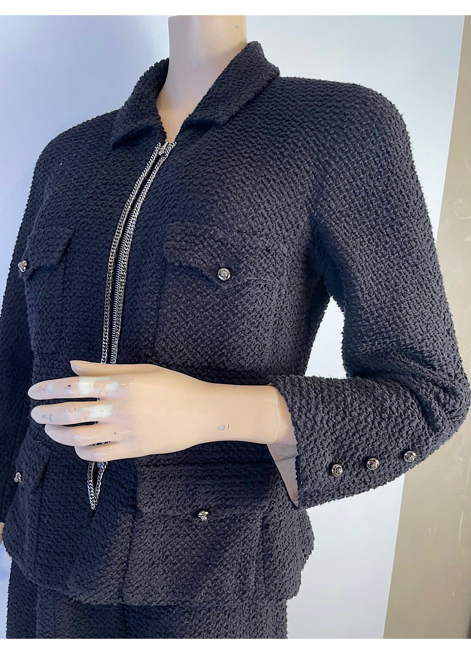 Rare Chanel Black Tweed Heavy Textured Skirt Suit, from sometime after the 2012 Chanel Collection.