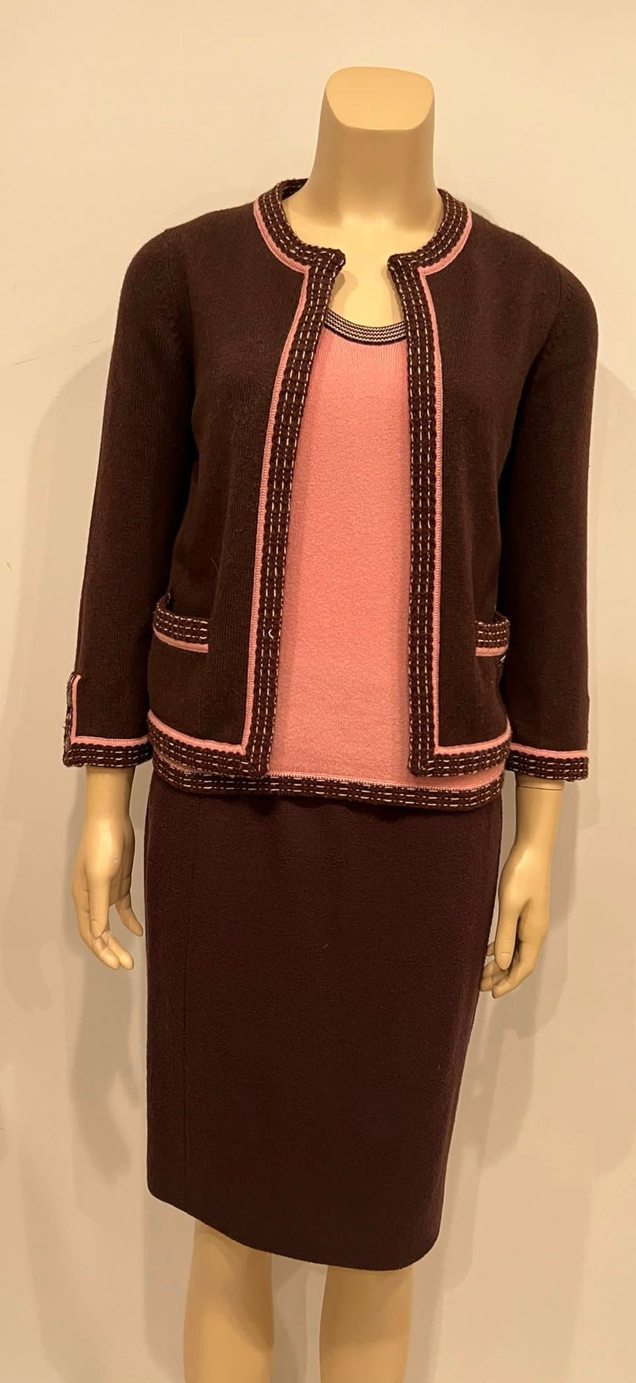 Goes perfectly with the deep brown & pink cashmere twinset we have listed, under blouse sold Separately under “Shop All”.