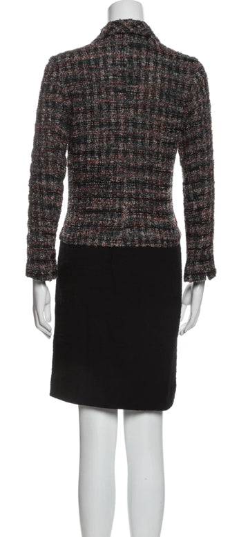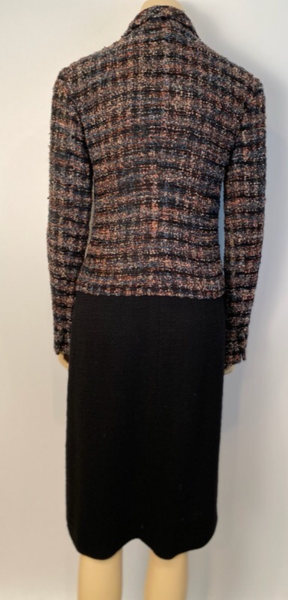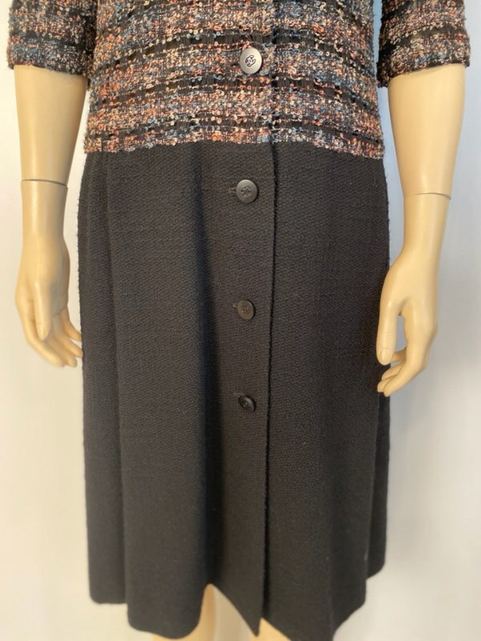 Vintage Chanel wool blend dress from the 98A, 1998 Fall Collection. The top of this dress is a textured boucle in black/gray, and shades of