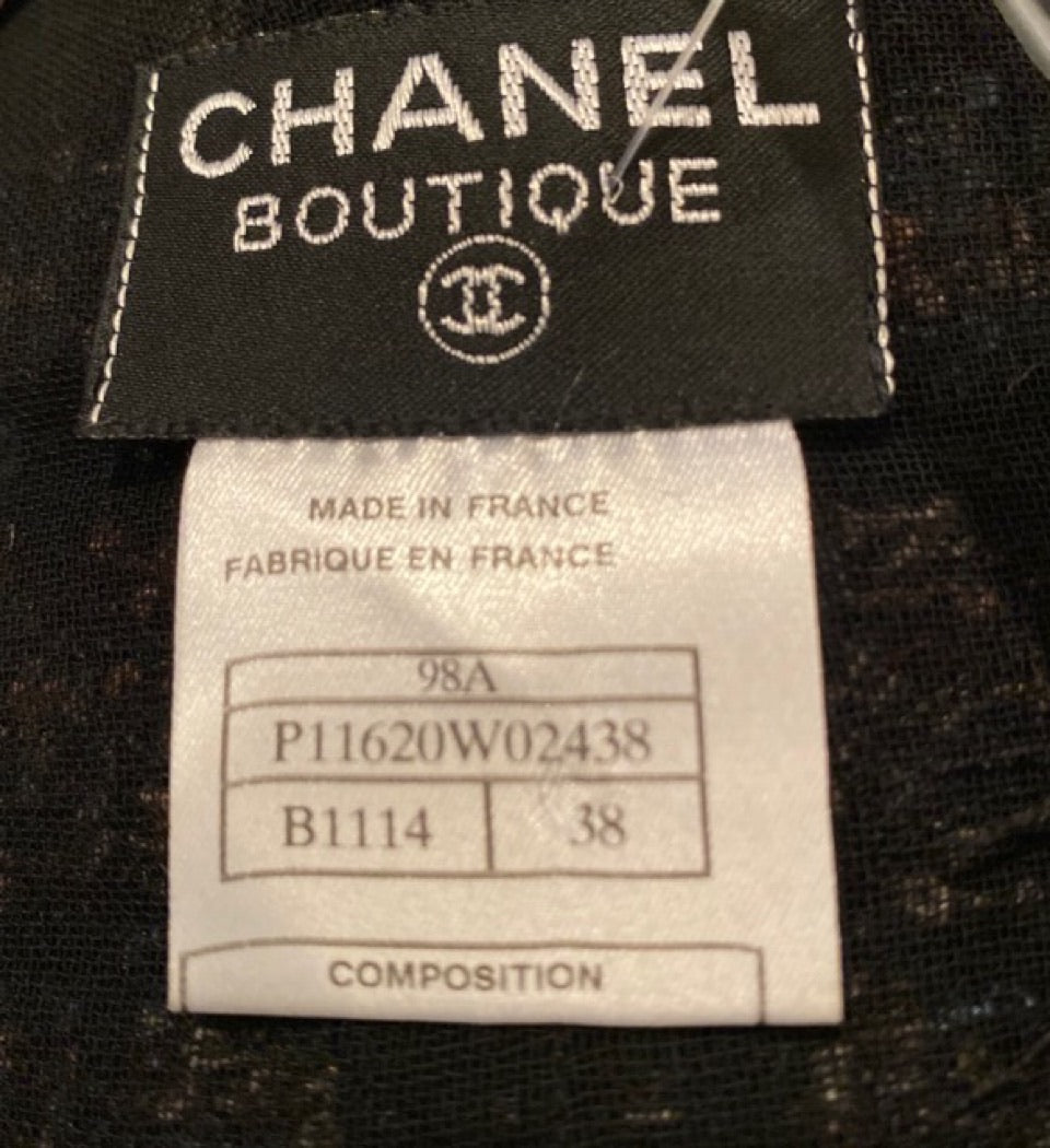It comes with the original Chanel packet which contains small samples all 3 of the different fabrics used in the garment.