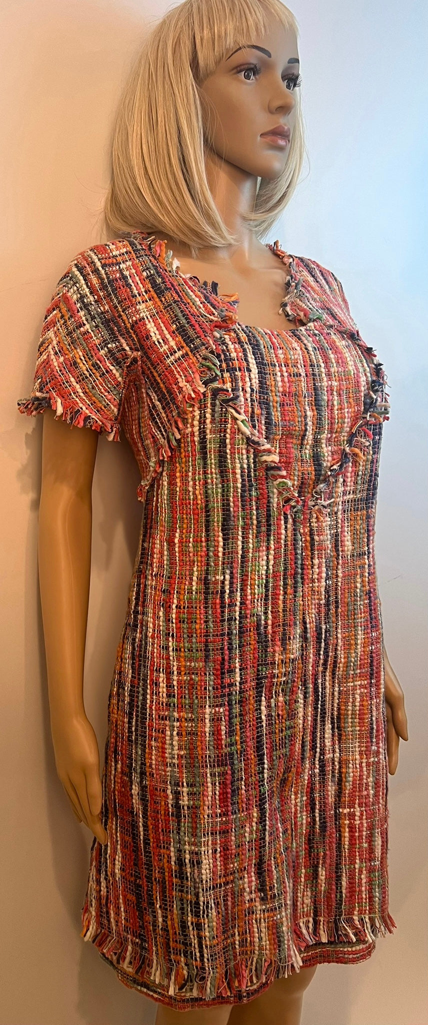 This is a beautiful a Chanel colorful textured dress with eyelash trim from the 2015 Collection.