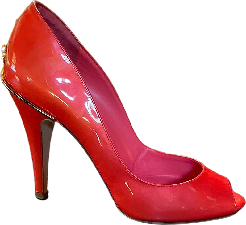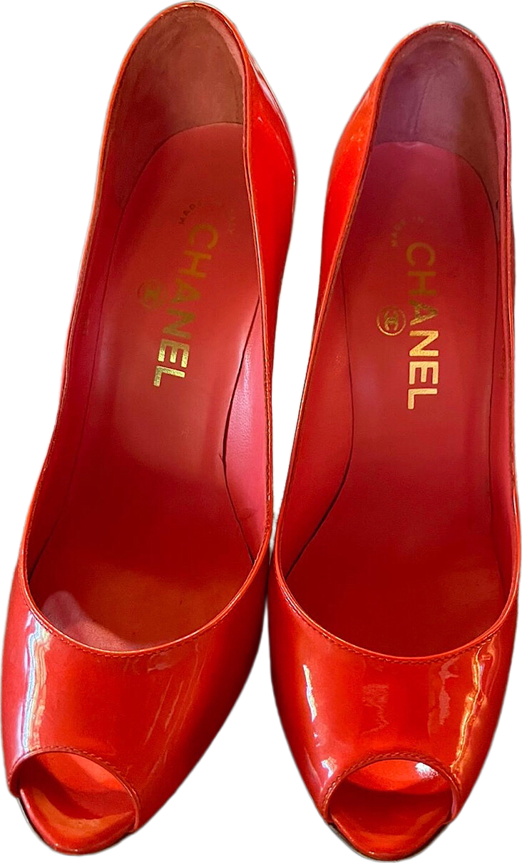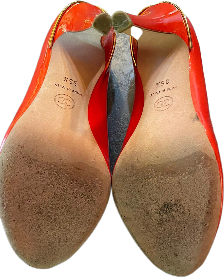Chanel 08C, 2008 Cruise Patent Leather Orange Peep Toe Pump Heels EU 35.5 US 4.5/5