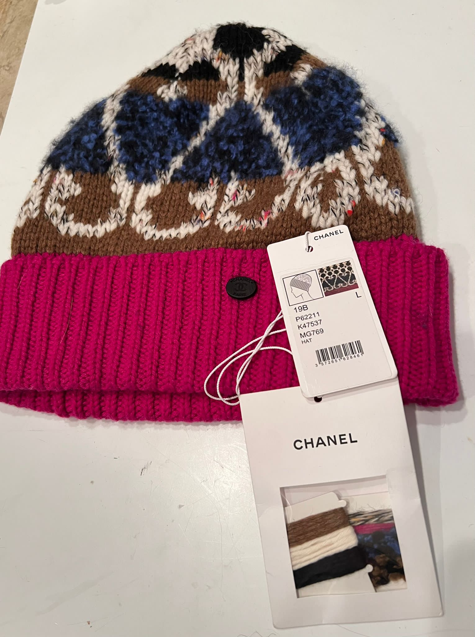 New With Tags Chanel's 19B, 2019 collection blue/fuchsia beanie winter hat.