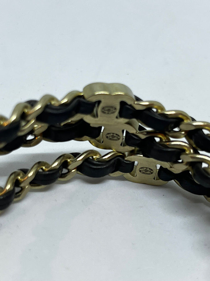 Single Chanel bracelet bangle from 12P, 2012 Spring slip on dark brown leather woven into gold chain.