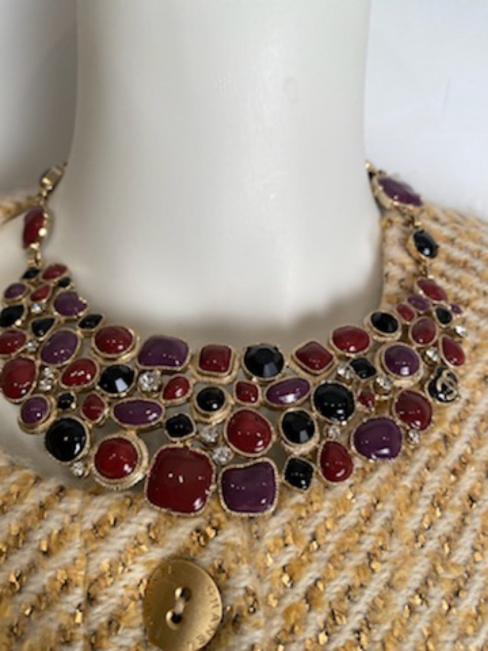 We have included both pictures from the Chanel 2C Magazine, the necklace is overlaid on the upper left side of the picture (the one pictured appears to have all black stones-this one has all the colors).