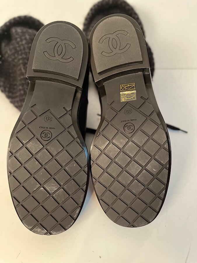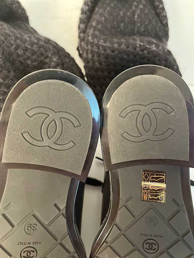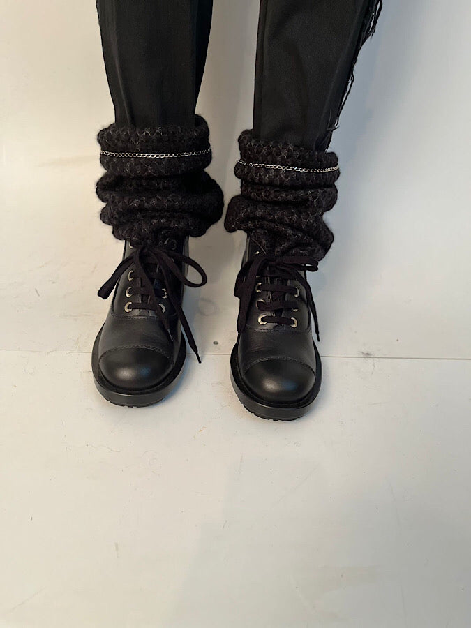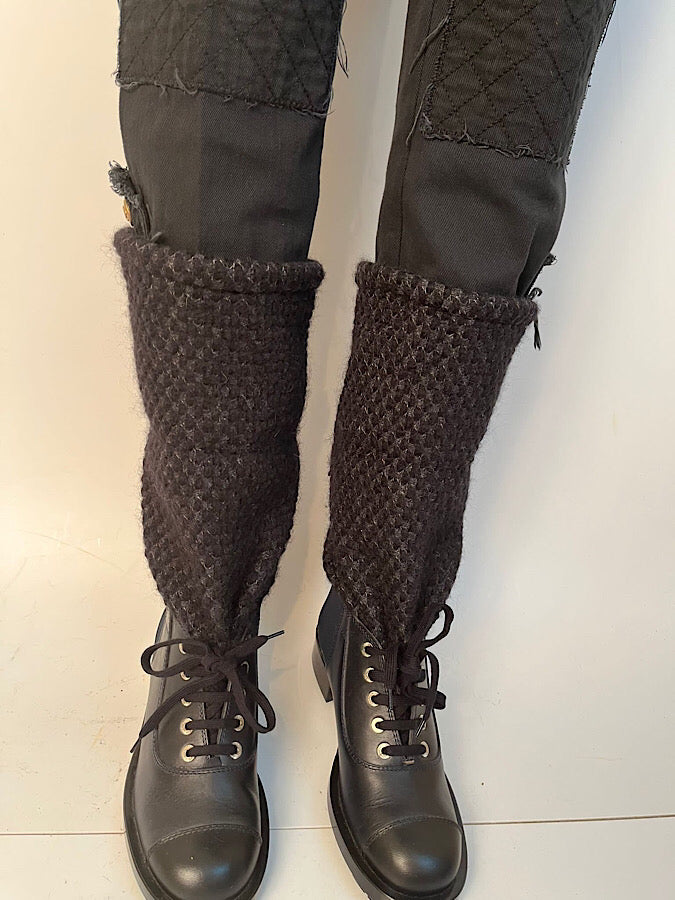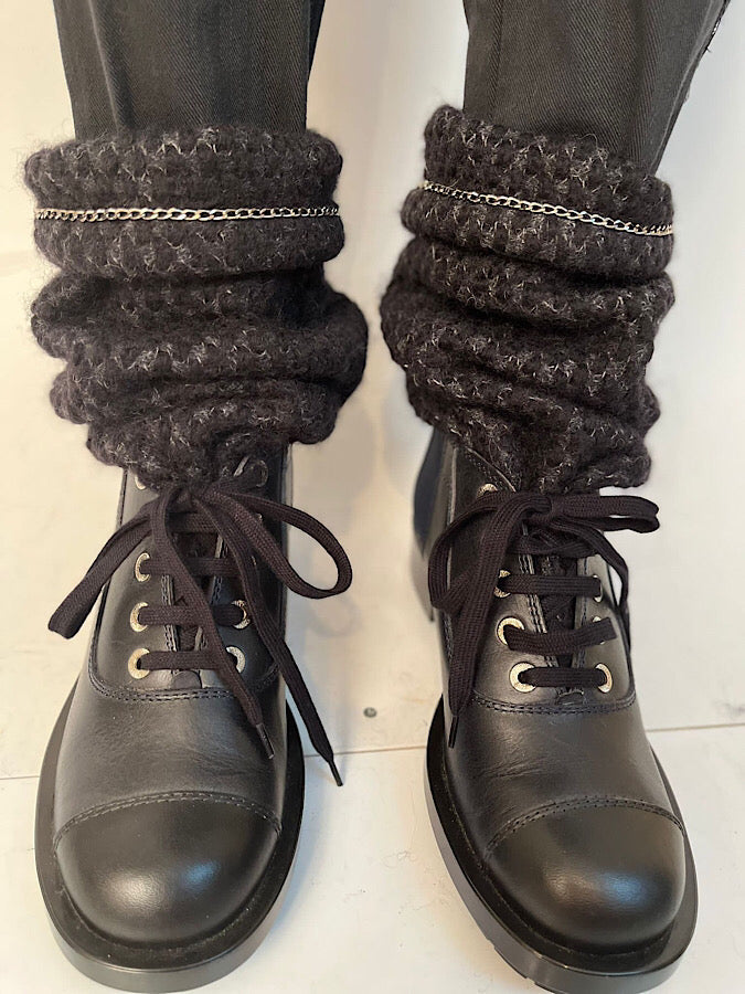 Chanel Runway 11A, 2011 Fall Ready to Wear boots with black woven wool tall sock tops (which can be worn pushed down at the ankles for a different look).
