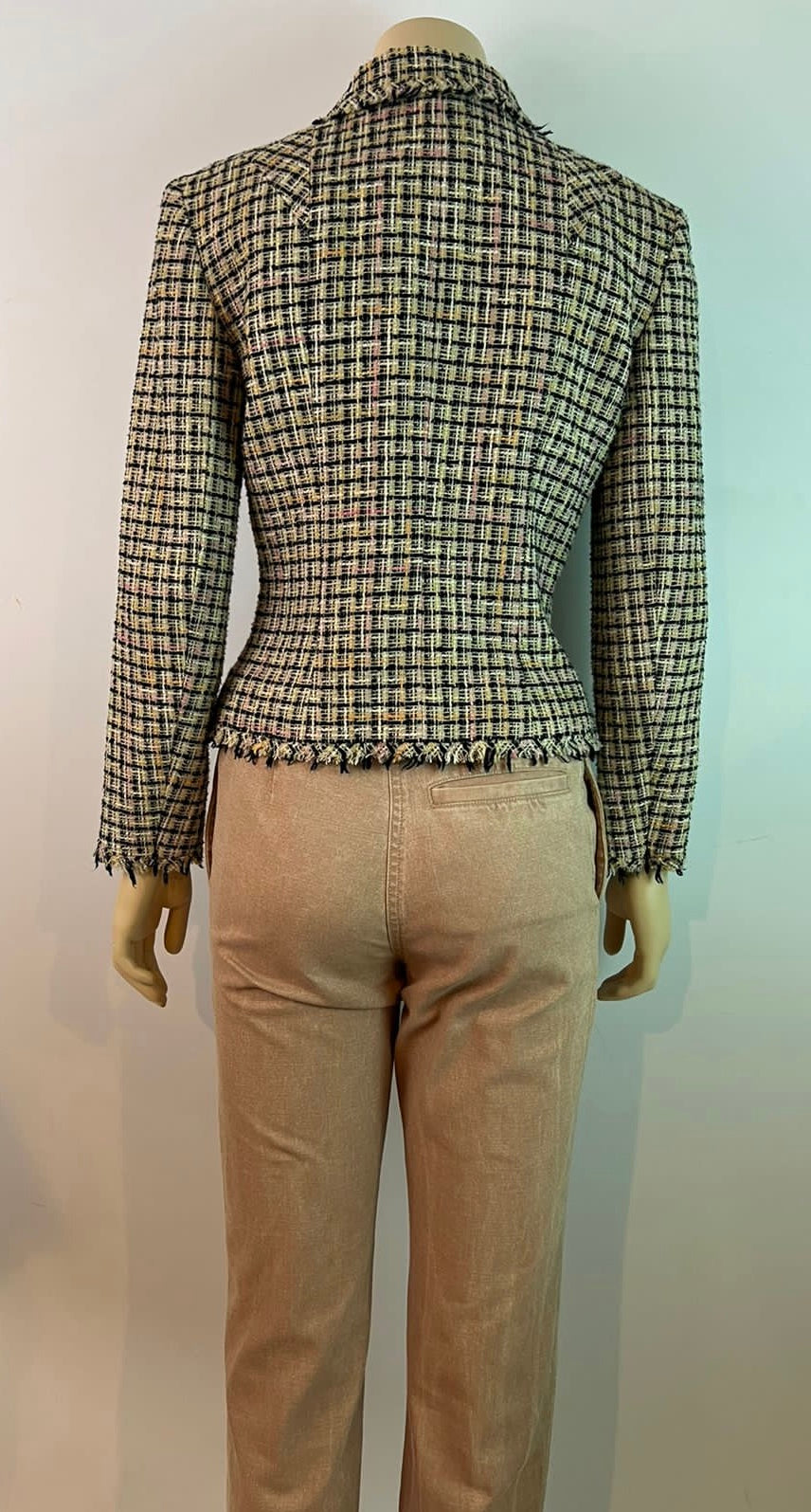 Shown with a fitted plaid Chanel jacket, shown in the "jackets" section.