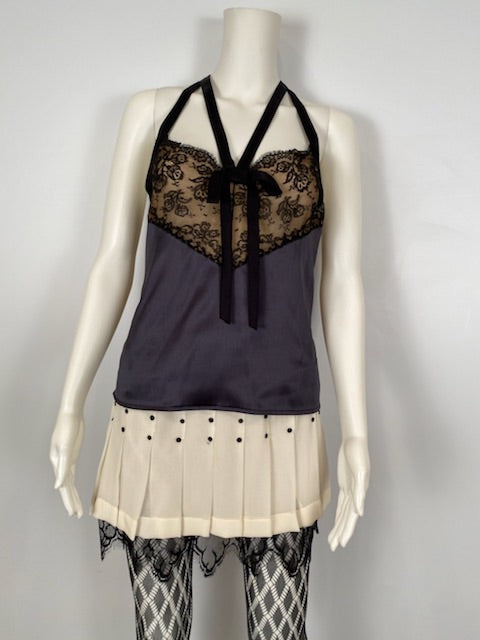 Chanel 05P, 2005 Spring Black Lace Satin Top Blouse.
