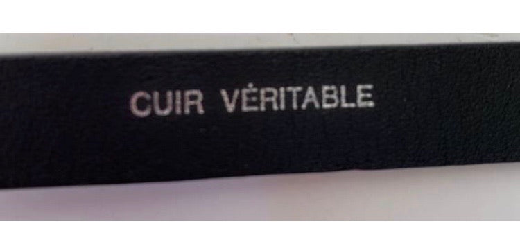 Black Patent Leather with Crystal buckle detail, and CC in crystals. This belt is high waisted and used with sweater or jacket.