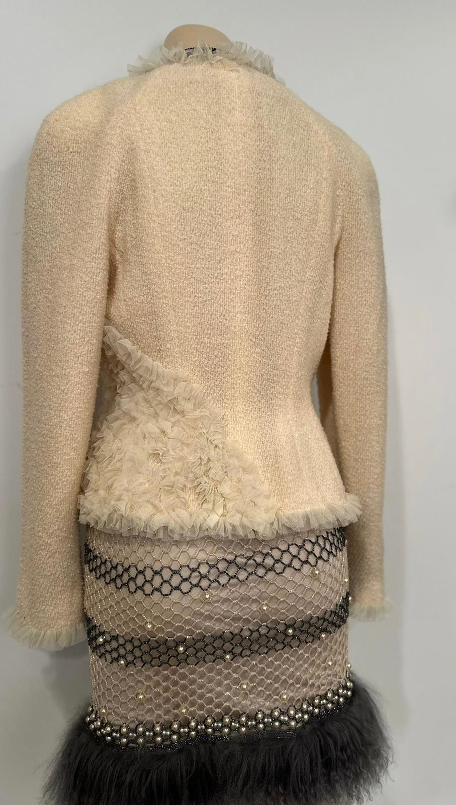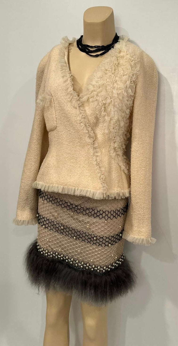 Very Rare Chanel jacket blazer with rows of voile ruffles from the 02C, 2002 Cruise Resort Collection.