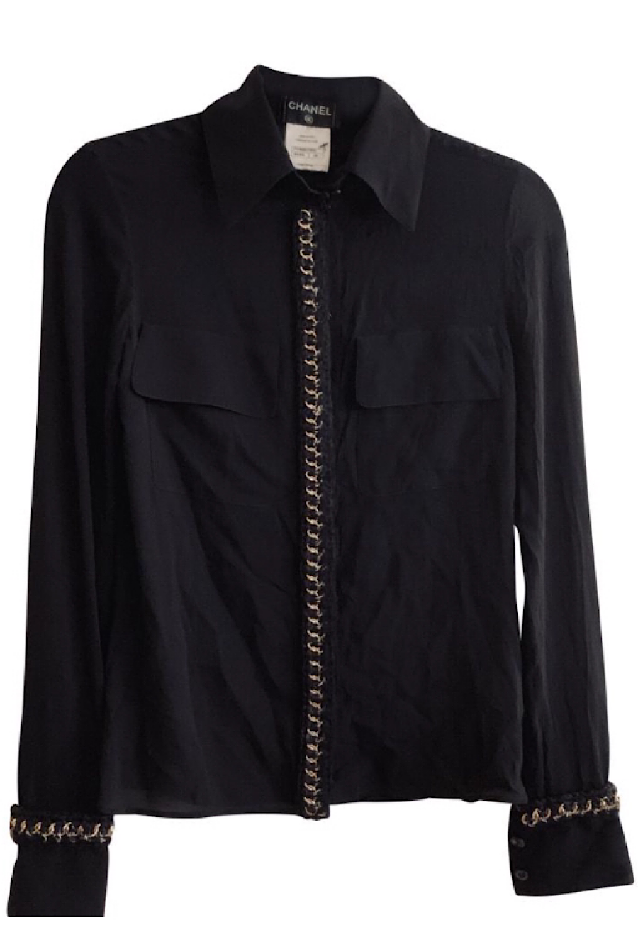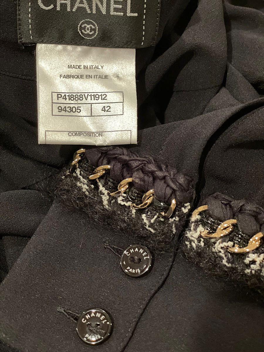 Chanel 11A, 2011 Fall black Blouse top w chain tweed trim FR 42 US 8