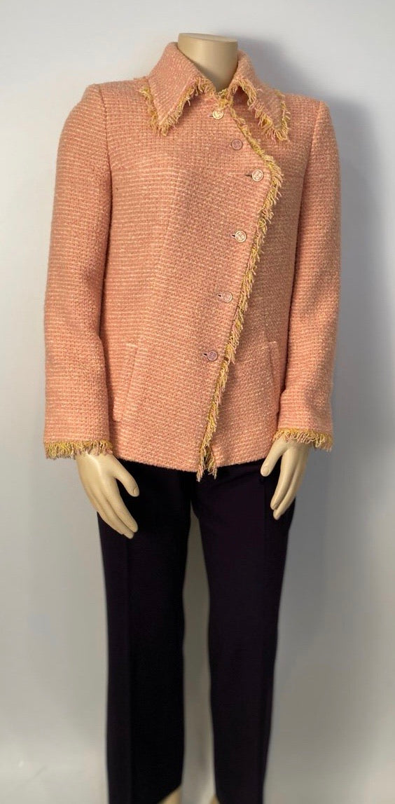 Vintage Chanel Tweed Pink and light yellow jacket from 01A, 2001 Fall.