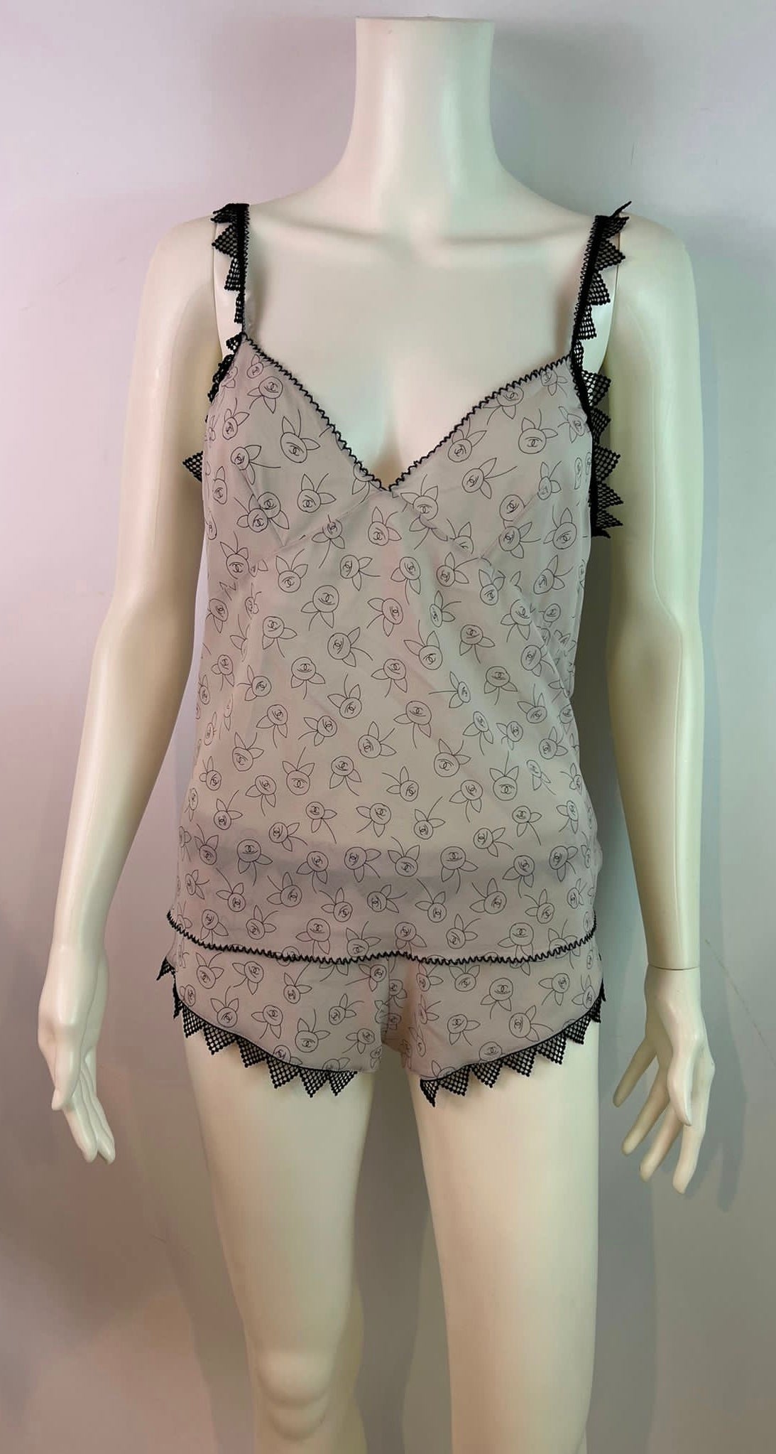 Rare Chanel Vintage 03A 2003 Fall Silk Lingerie 2 Piece sleepwear set boy short tank top camisole FR 40 US 6