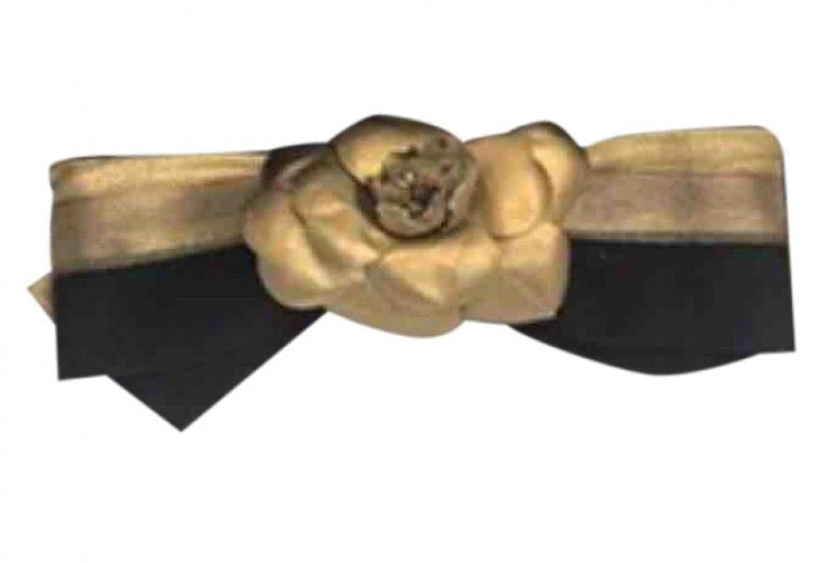 Chanel 12P, 2012 Spring Black Gold Camellia Flower Barrette Hair Accessory Clip