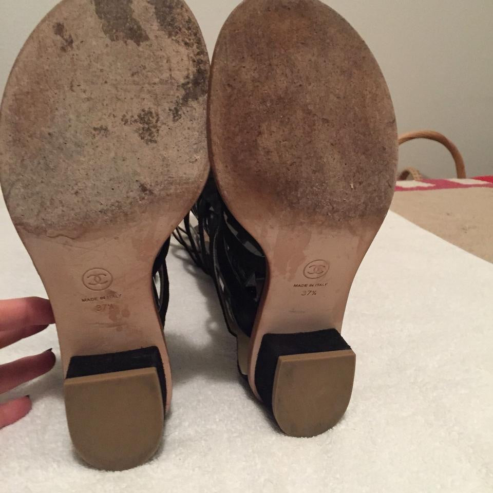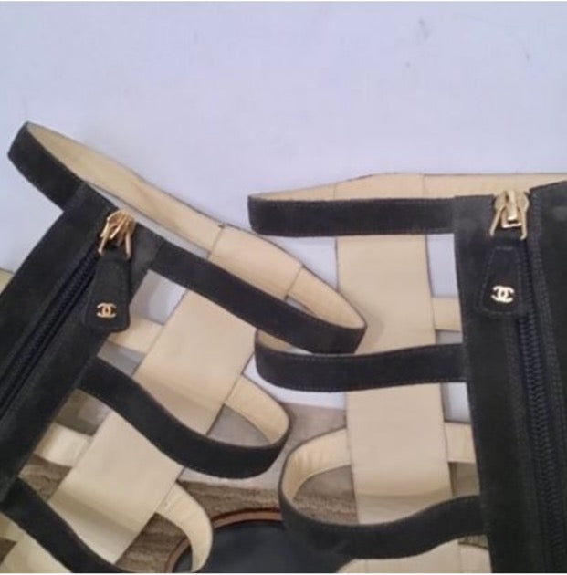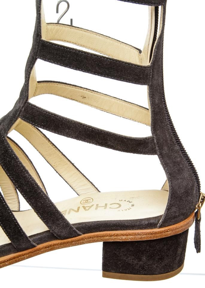 Editing (Elisa Layaway) Chanel Gladiator 15S 2015 Summer Strap Flat Sandal Boots Dark Grey Suede Leather EU 37.5 US 7