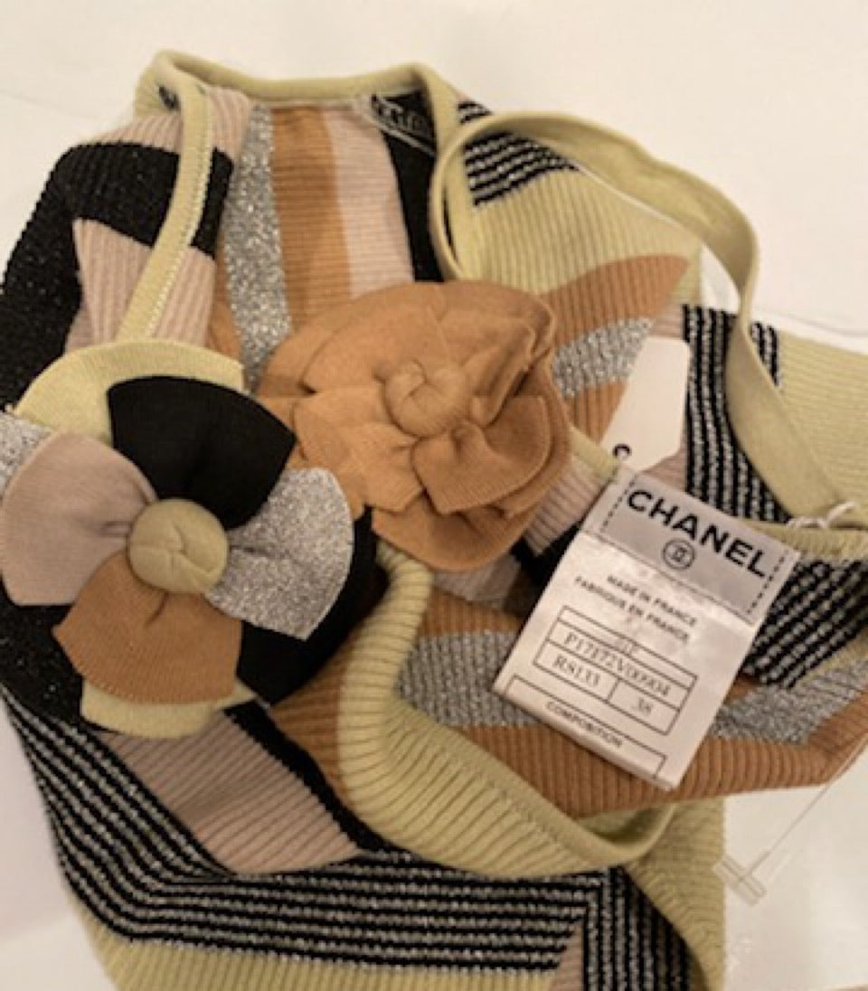 Chanel 01P, 2001 Spring Camellia ribbed shoulder striped top blouse FR 38