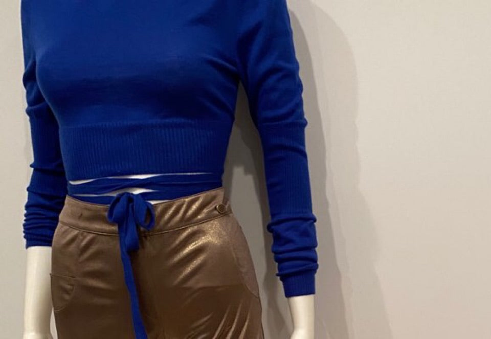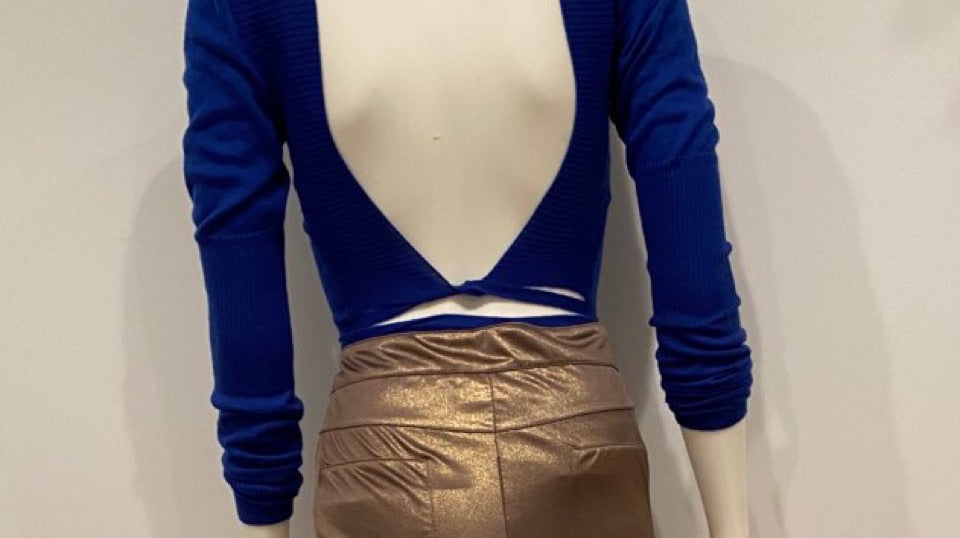 Chanel versatile 04A, 2004 Fall Runway royal blue cashmere cardigan.. Royal blue. . Cropped with a tied waist. Can be worn wrapped frontwards or backwards.