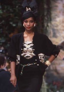 Welcome to the amazing world of Chanel Couture-the year is 1985 and we are watching the couture runway show from Chanel -where every piece is a hand decorated work of art--We spot the showcase piece of the show -a sophisticated black dress with simple lines, but a bodice of crystals, each held in place by prongs just as they would be if they were on a ring-hundreds if them, perhaps over 1,000!