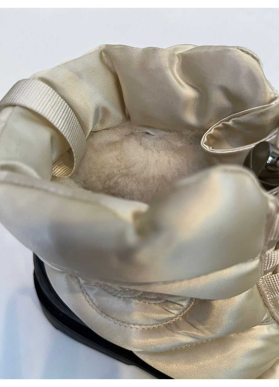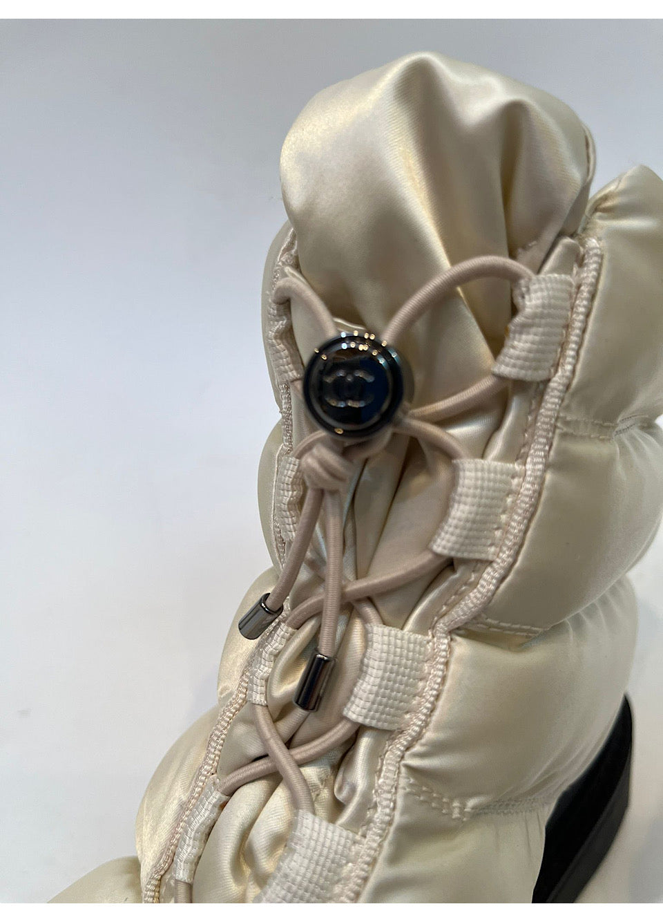 Chanel 2018 Fall/Winter 18A Ivory Winter White Nylon Down Shelling Lined Warm Snow Winter Boots.
