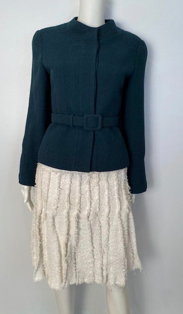 Vintage Chanel 98A, 1998 Fall Dark Green Short Jacket with matching belt FR 38