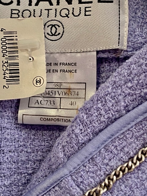 New with tags Chanel Vintage 98P, 1998 Spring lilac/blue jacket.