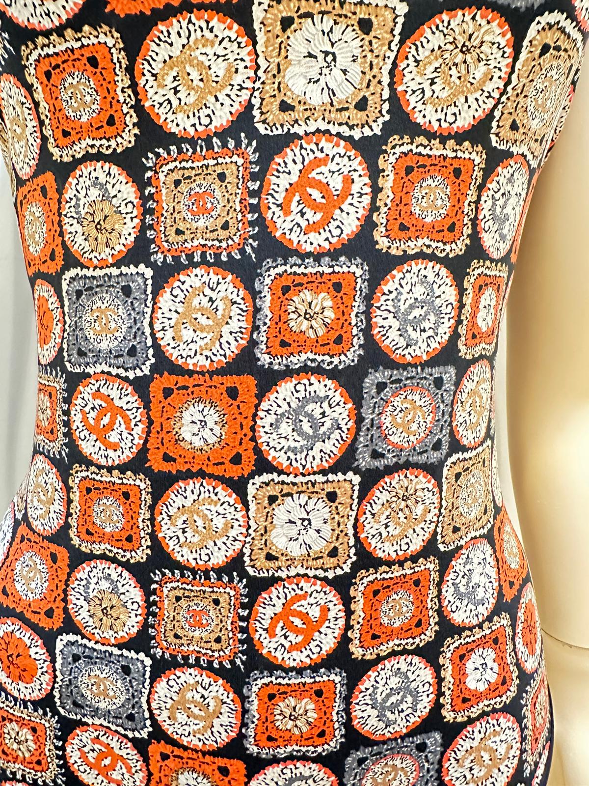 I tried counting all the CC logos on this Chanel bathing suit, but I stopped at 50! Flattering style/low back, with 1 thin strap hooking in the back then another CC logo. From Chanel's 09P 2009 Spring Collection. It is shown on a size 4 mannequin. Composition:78%nylon 22% spandex
