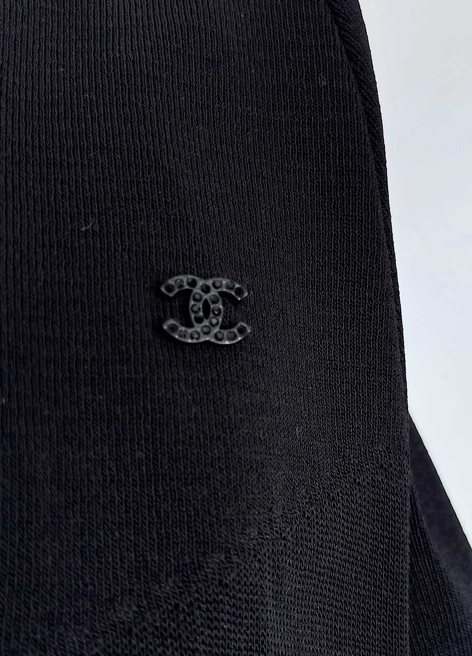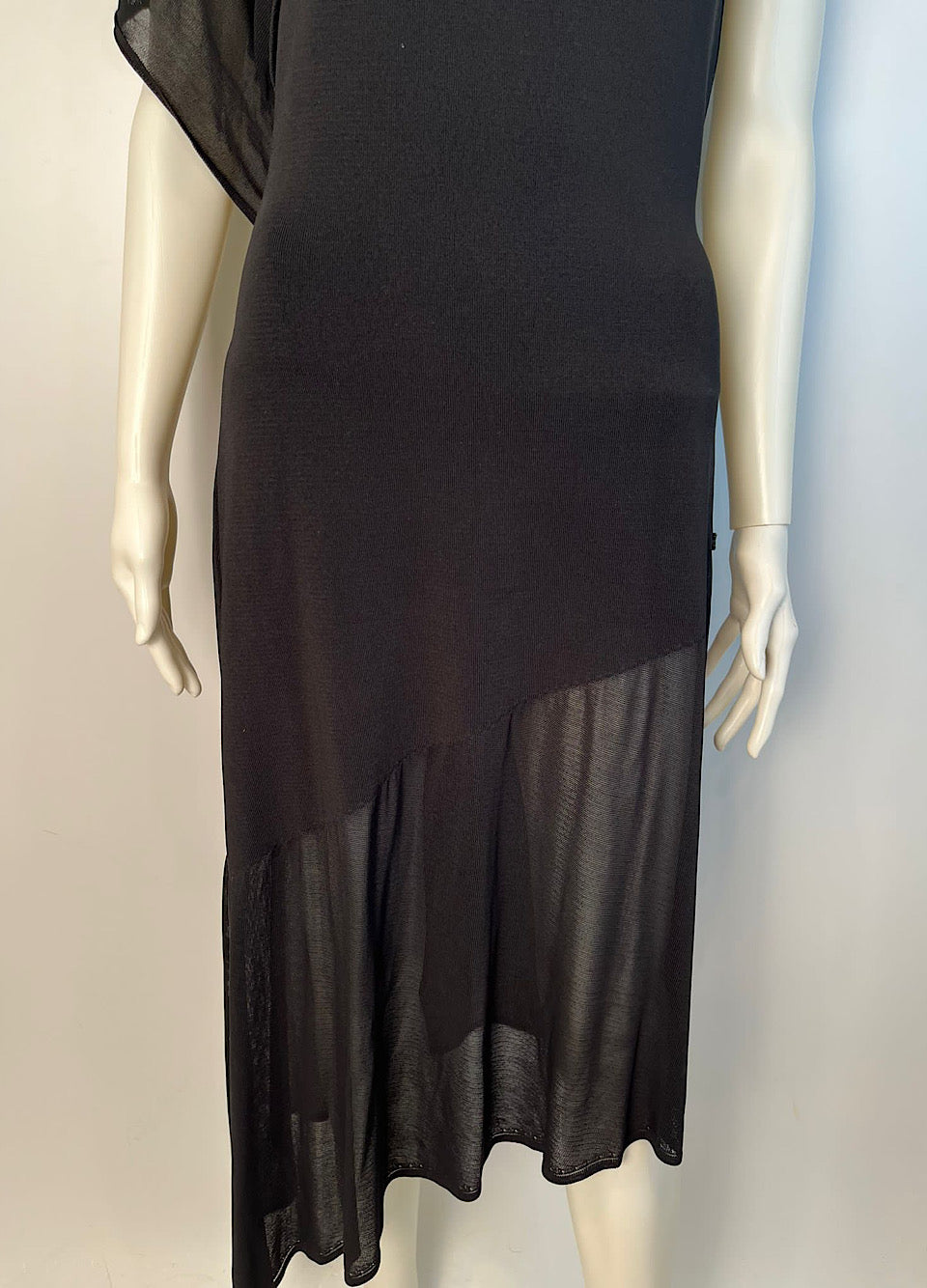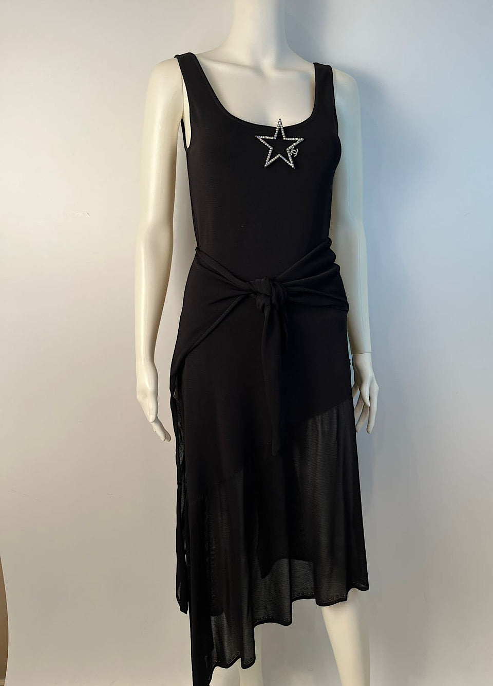 Chanel 02C 2002 Cruise Resort Collection stretchy sophisticated black dress with matching 4 pronged removable scarf with a angled hem line.