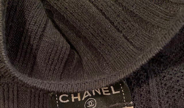 Chanel 05A Black Long Sleeve Ribbed CC Logo Sweater Dress FR 38 US 4/6