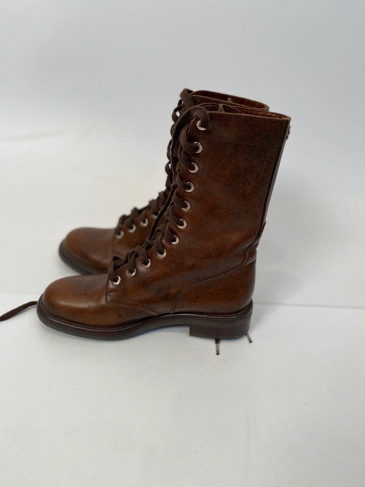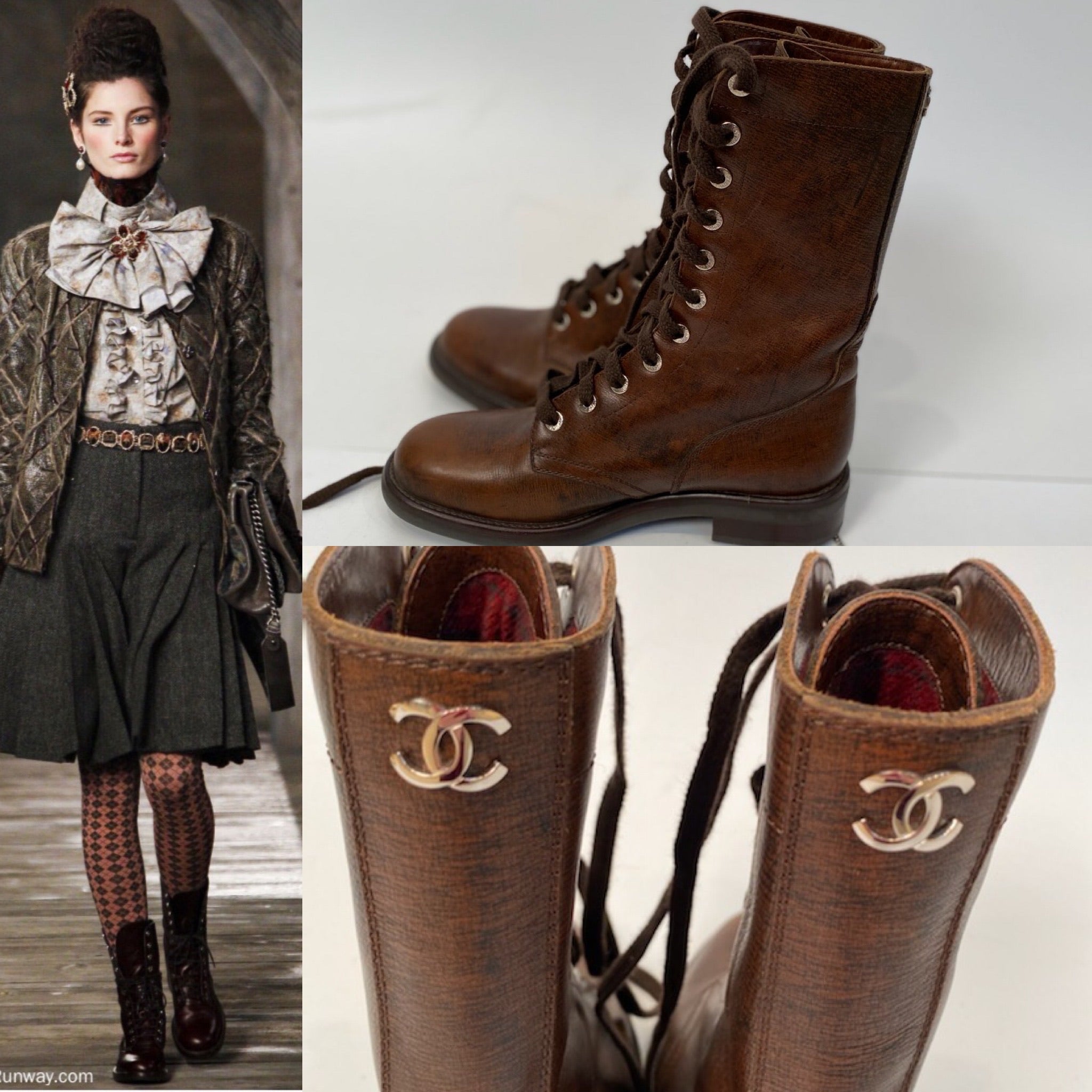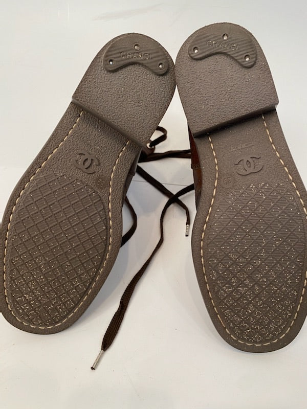 Chanel 13A Paris Edinburgh Brown Leather Lace Up Engineer Boots EU 39