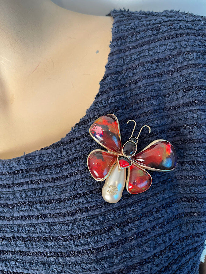 Beautiful and rare Chanel poured glasss butterfly pin from the famous 2015 Spring Ready-to-Wear Runway collection.