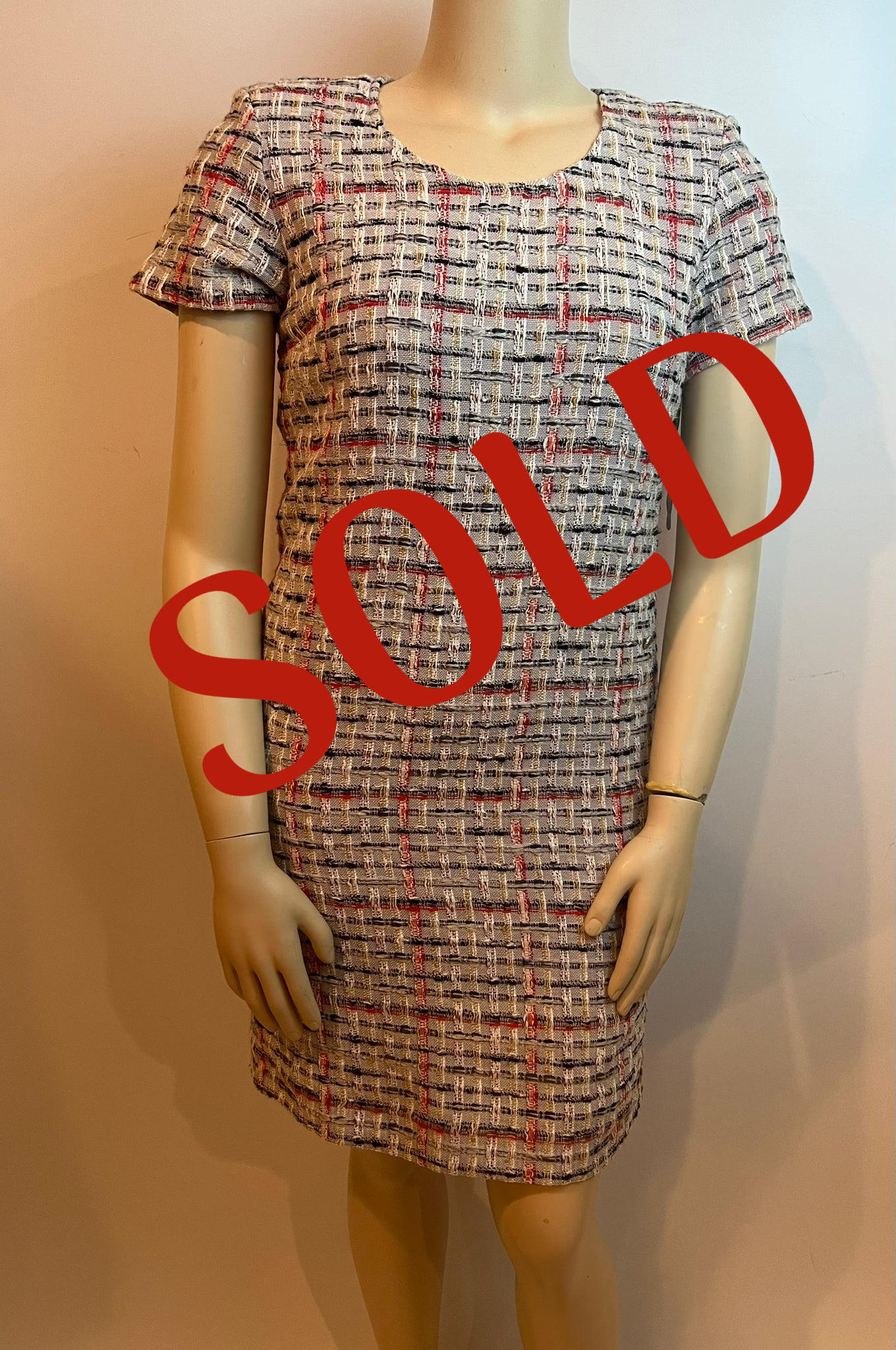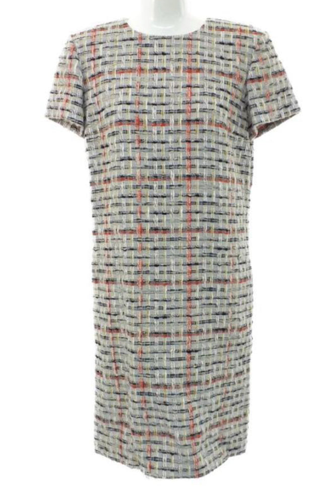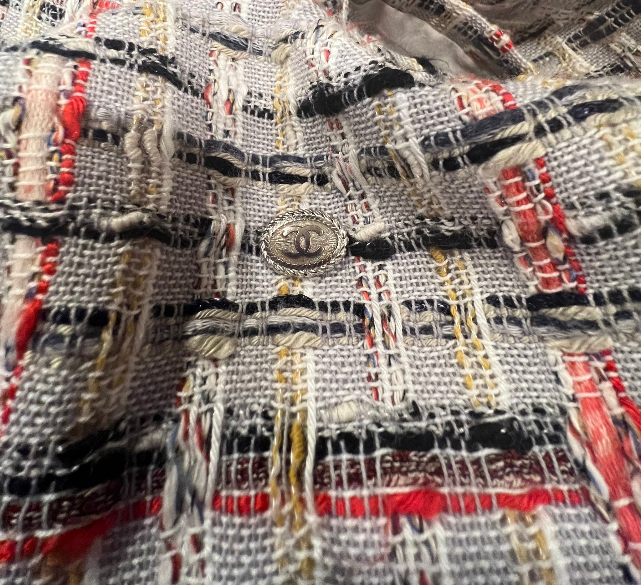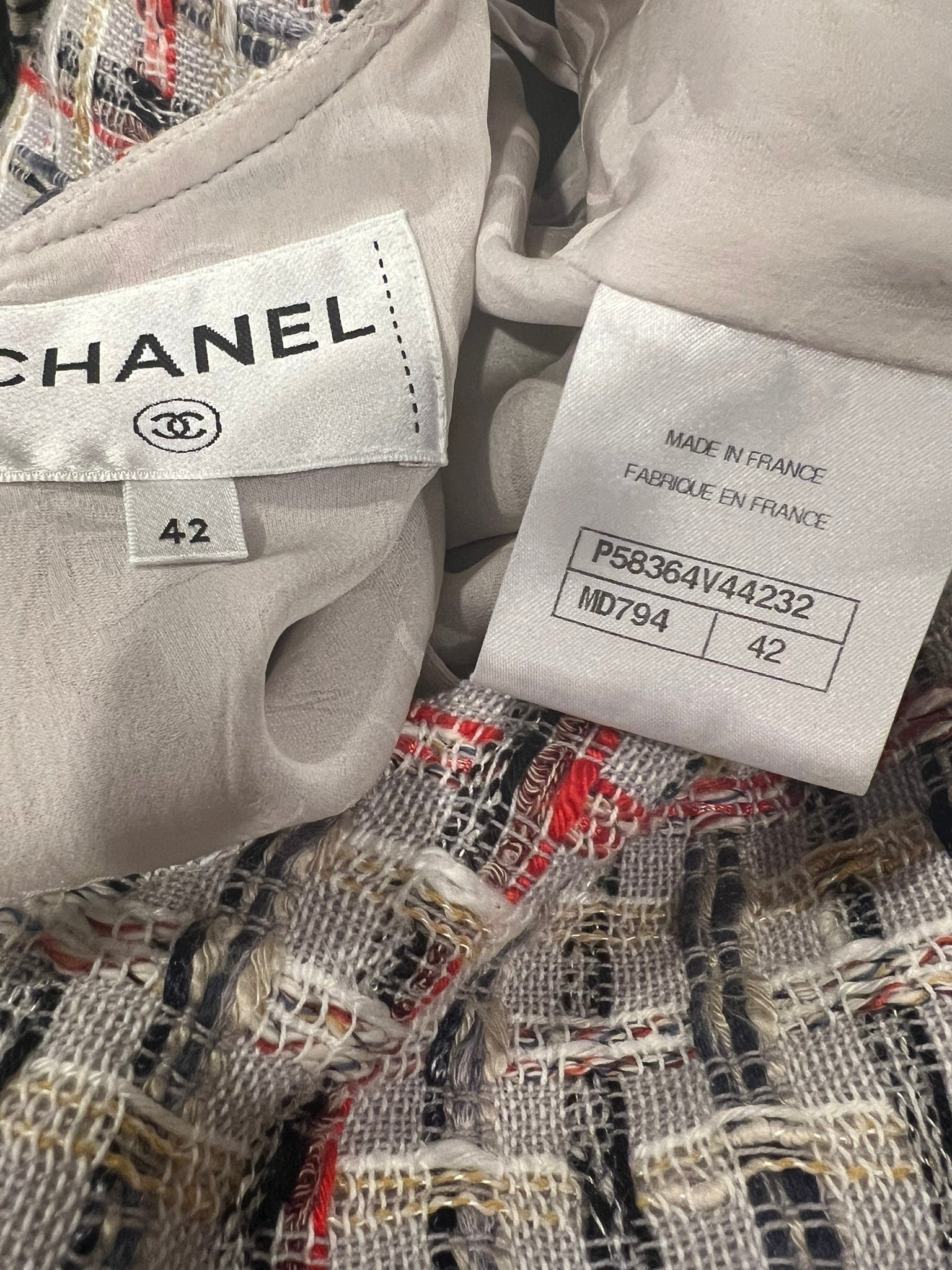 Chanel 18P 2018 Spring dress in gray, red, white, and black.