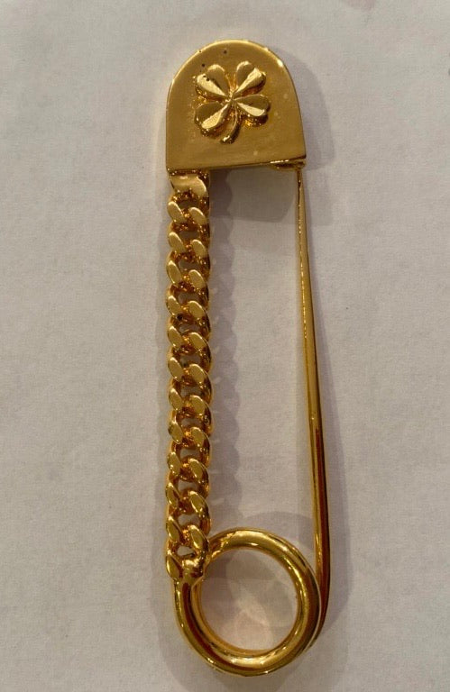 Rare vintage Chanel gold chain kilt safety pin with A shamrock. Marked “Chanel" on the back.