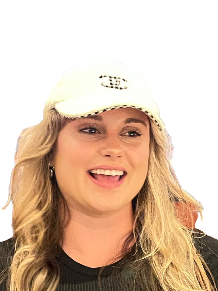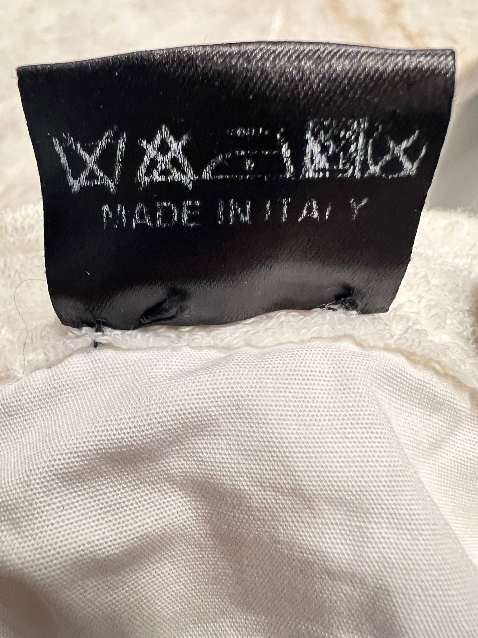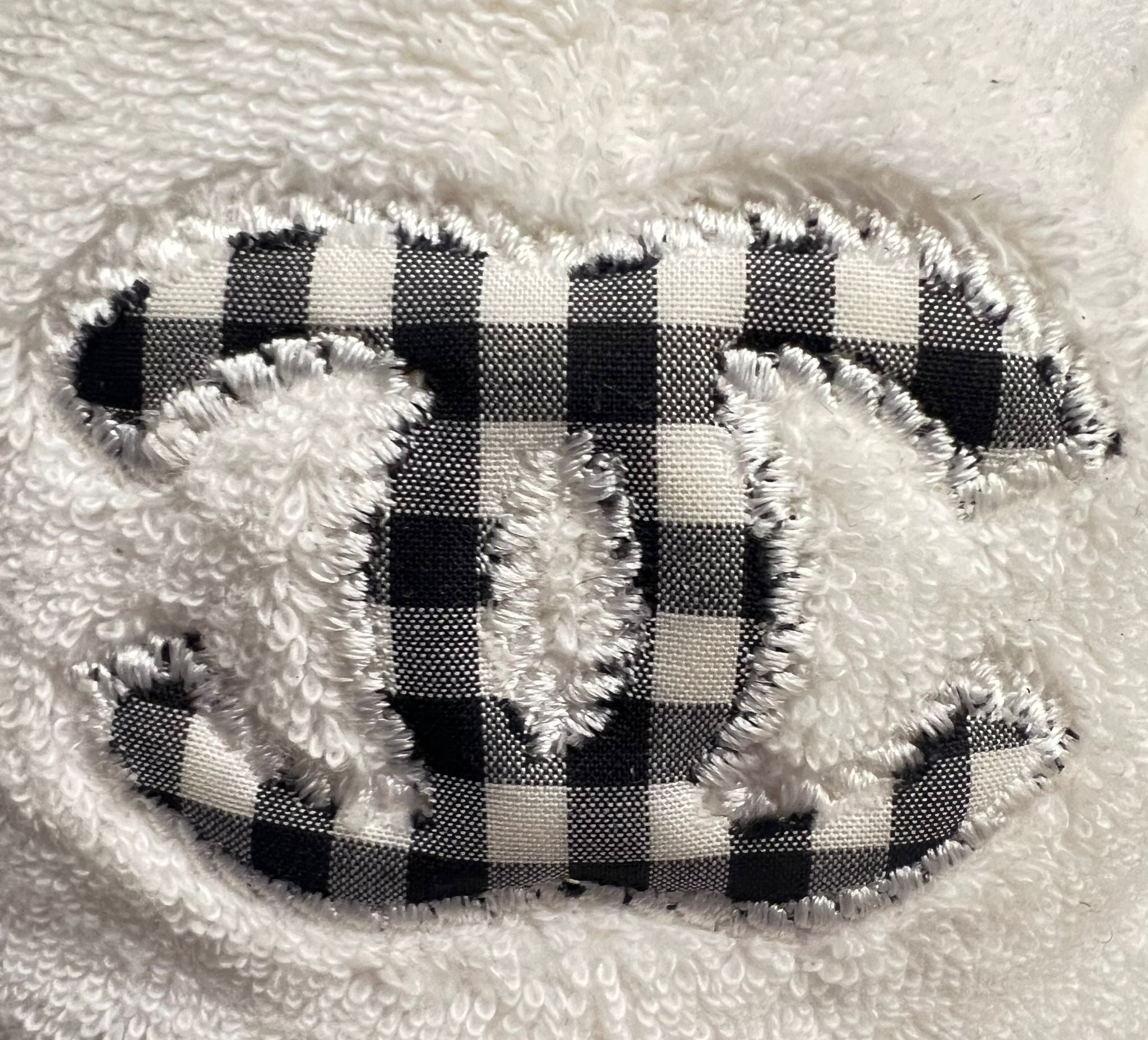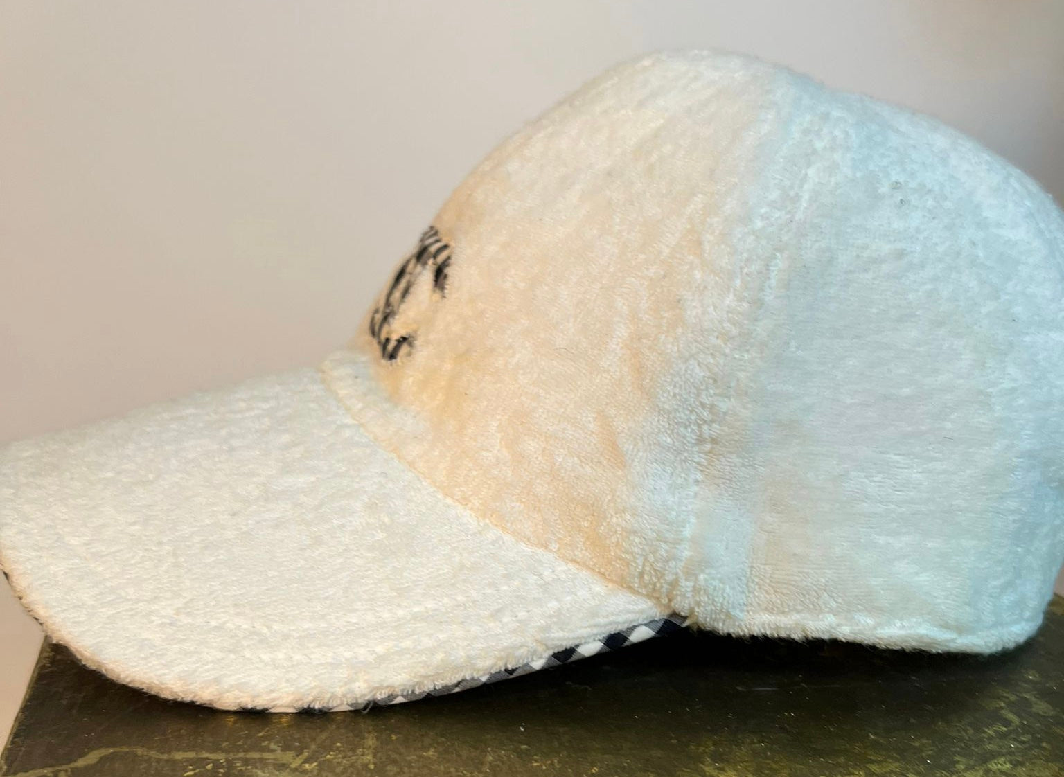 Chanel white terrycloth baseball cap, black and white CC logo and matching black and white trim around the underside of the bill. Elastic back for a good fit. Size Medium.