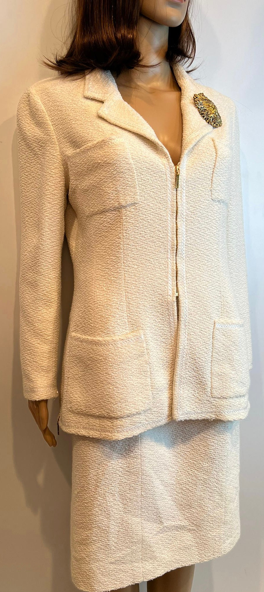 This exquisitely detailed Chanel brooch looks like a work of art, from the 19K collection (2019, fall/ winter, act 2). it is in the shape of a lion' s head with a mane flowing and a "CC" logo at the neckline. The overall shape is a dome, giving the impression that it is 3-D.