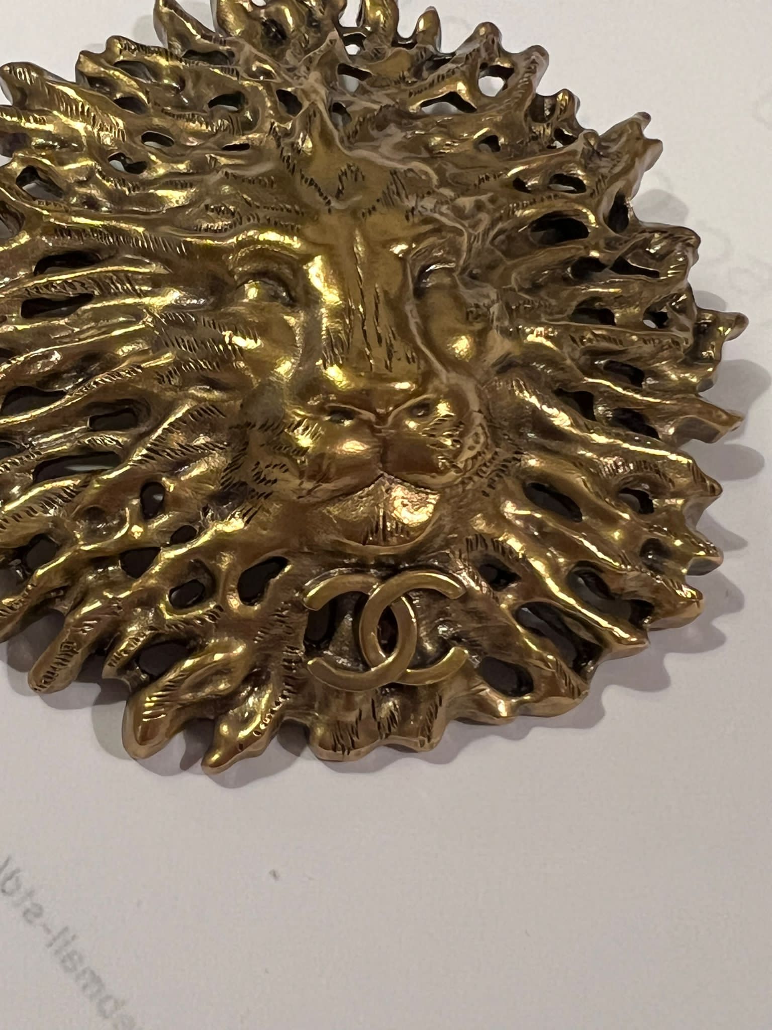 Large Collectible, Limited Edition Chanel gold lion's head brooch pin.