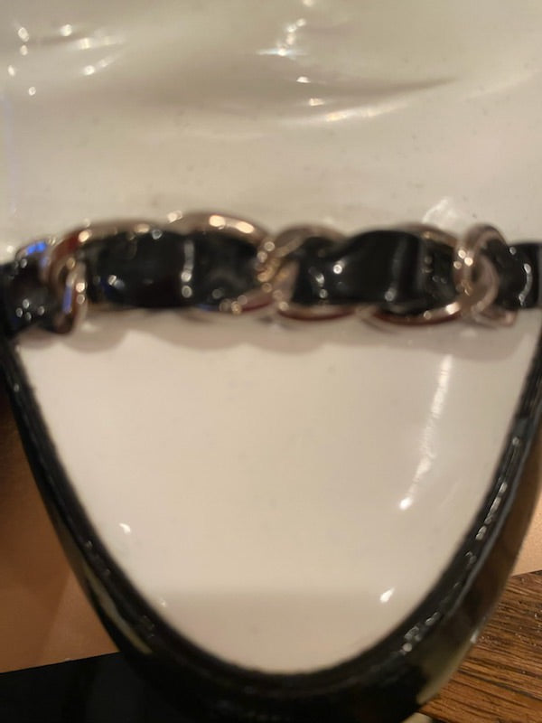 In very good but not perfect condition, there are slight wrinkles across the toe area and there is a small repair, shown in one of the pictures. Price has been adjusted because of these 2 things. The underside has been reinforced.