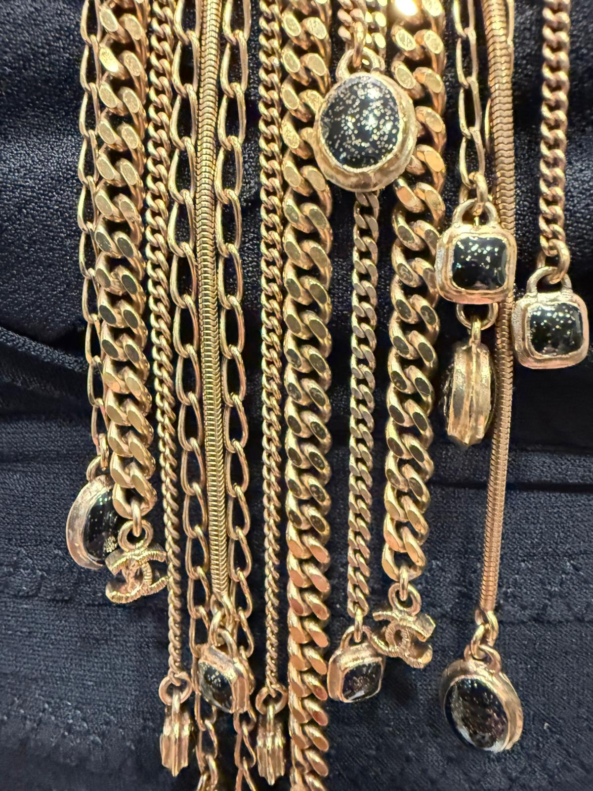 Chanel Show Stopper Necklace! Black Gripoix/Stone with glitter and gold chains.