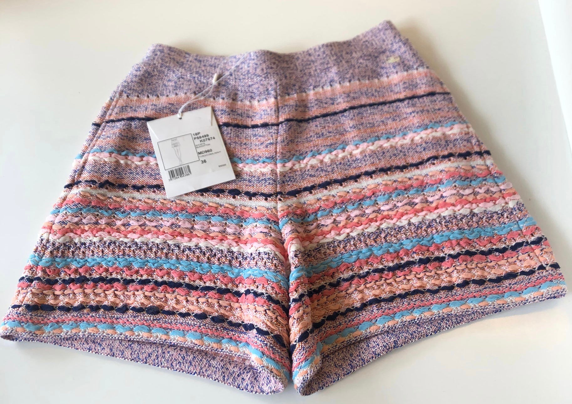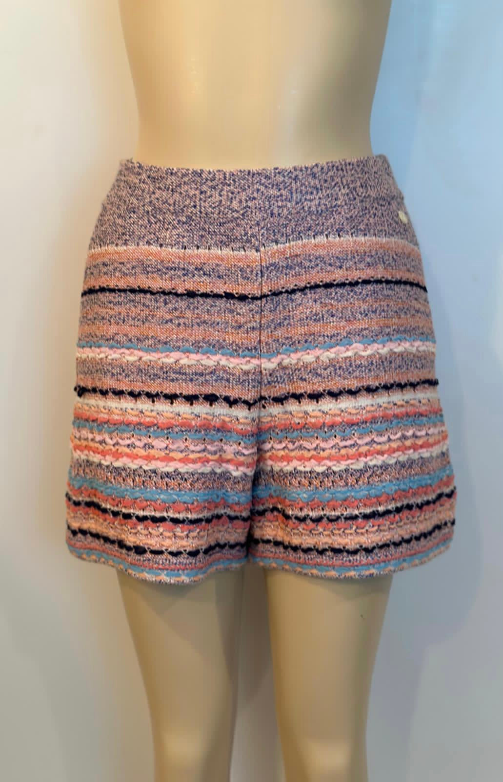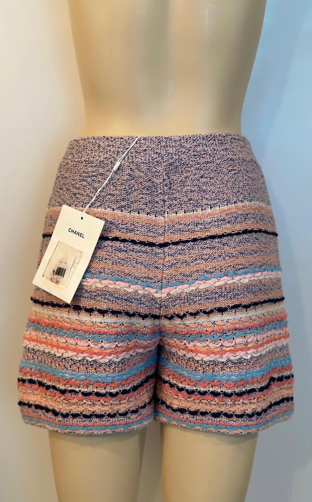 NWT New with Tags, Chanel multicolor striped woven shorts from the 18P, 2018 Spring Ready to Wear Collection.