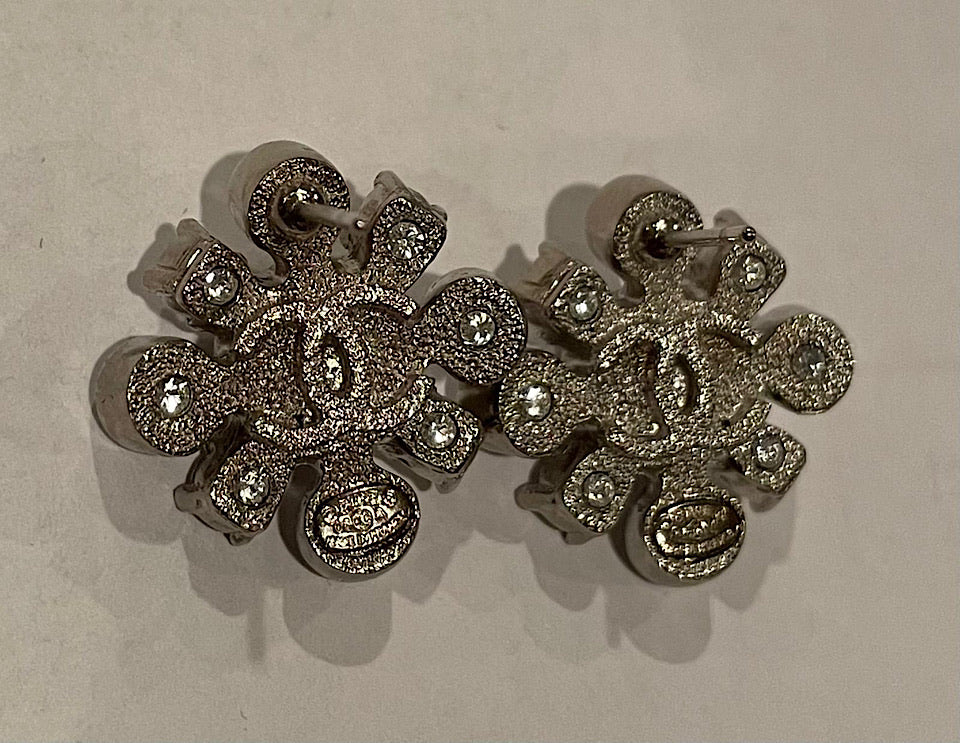 These stud earrings from Chanel 06A, 2006 Fall are so pretty, you'll love wearing them for your most special outings! They are crafted from silver-tone metal into a floral shape and are beautifully embellished with crystals and CC logo at the center. They will match well with a lot of your outfits.