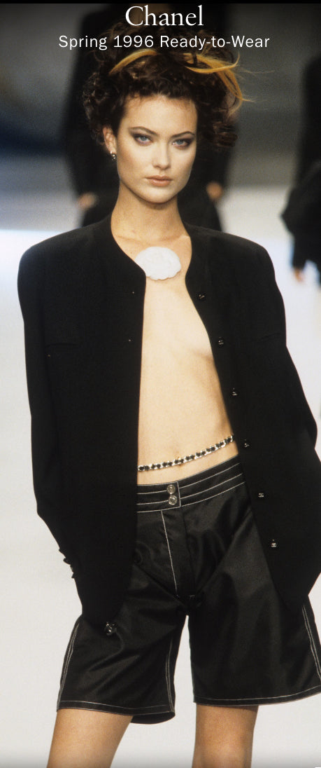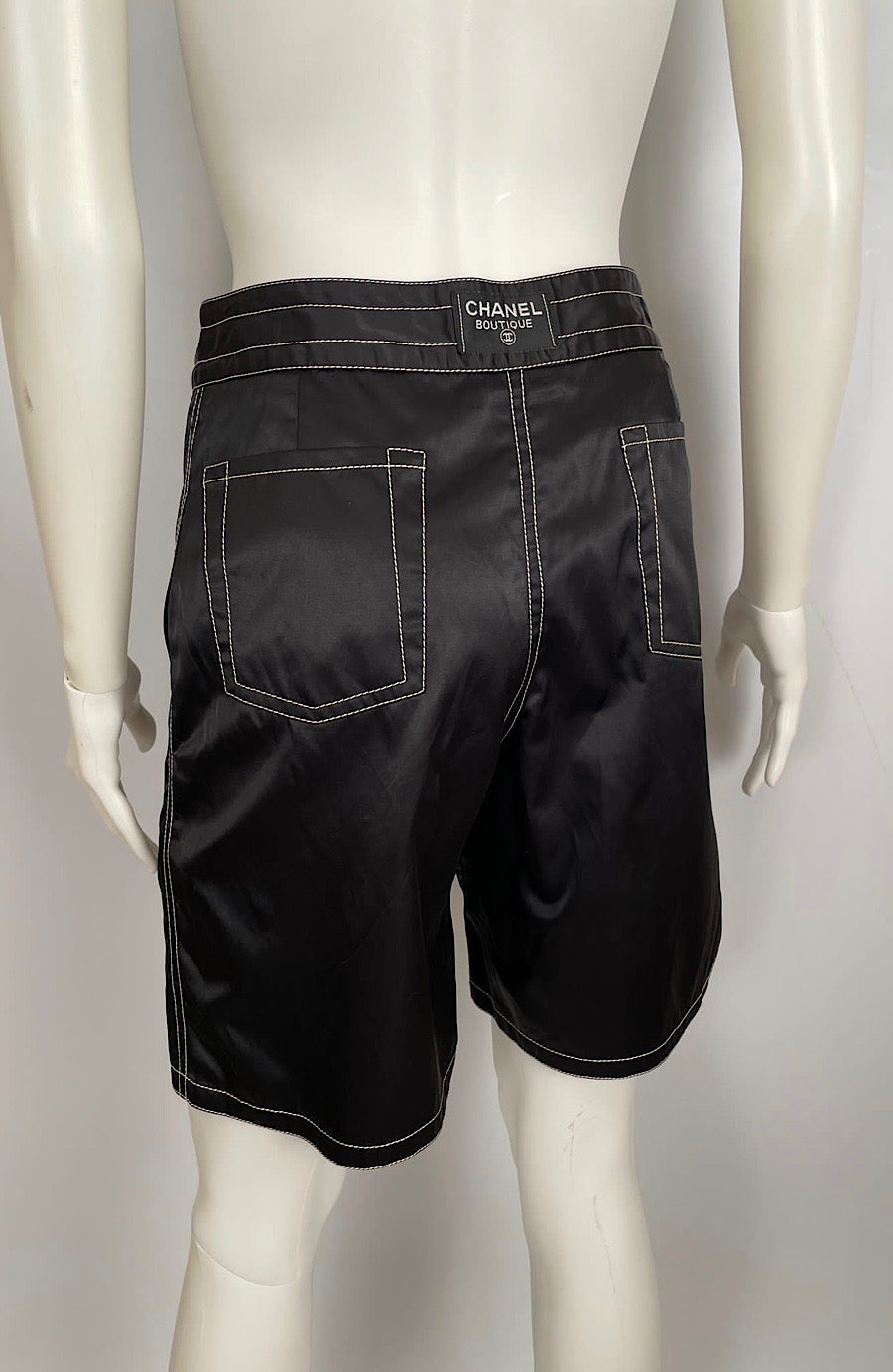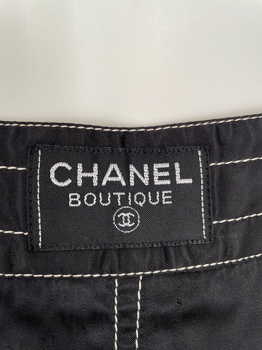 Vintage Chanel black sporty short from Chanel's 96P, 1996 Spring Runway collection. This pair of Chanel shorts has 2 Chanel tags, 1 on the inside of the waistband, and one on the outside