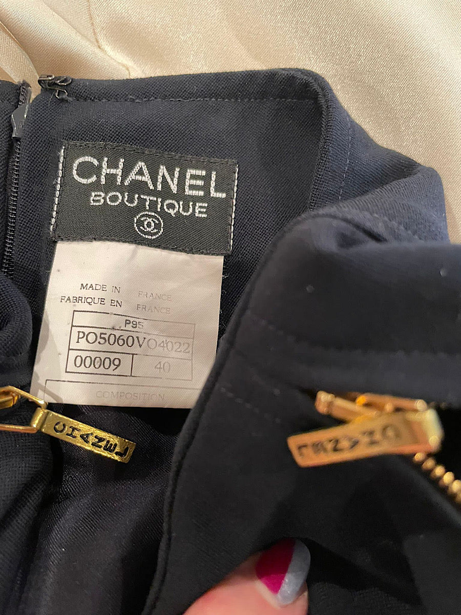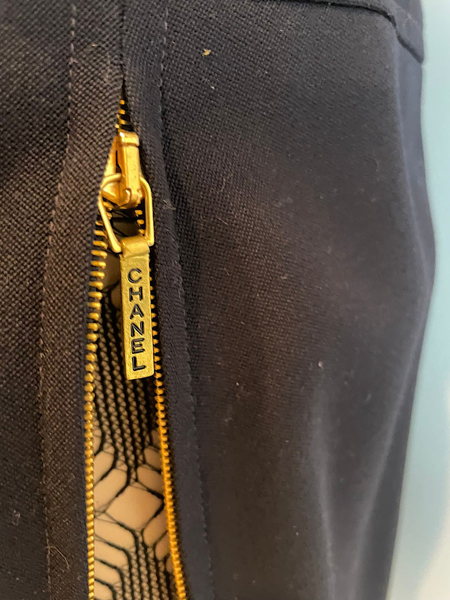Vintage Chanel sided zipper skirt in Dark Navy Blue from the 95P, 1995 Spring collection.