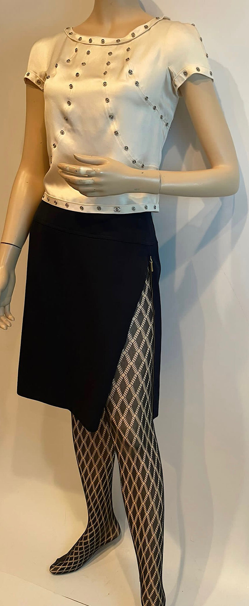This is a rare Chanel vintage skirt, which can be very sophisticated when all the zippers are zipped up, but also very frisky when you wear it with the sides unzipped!