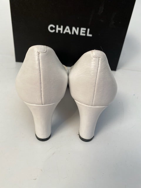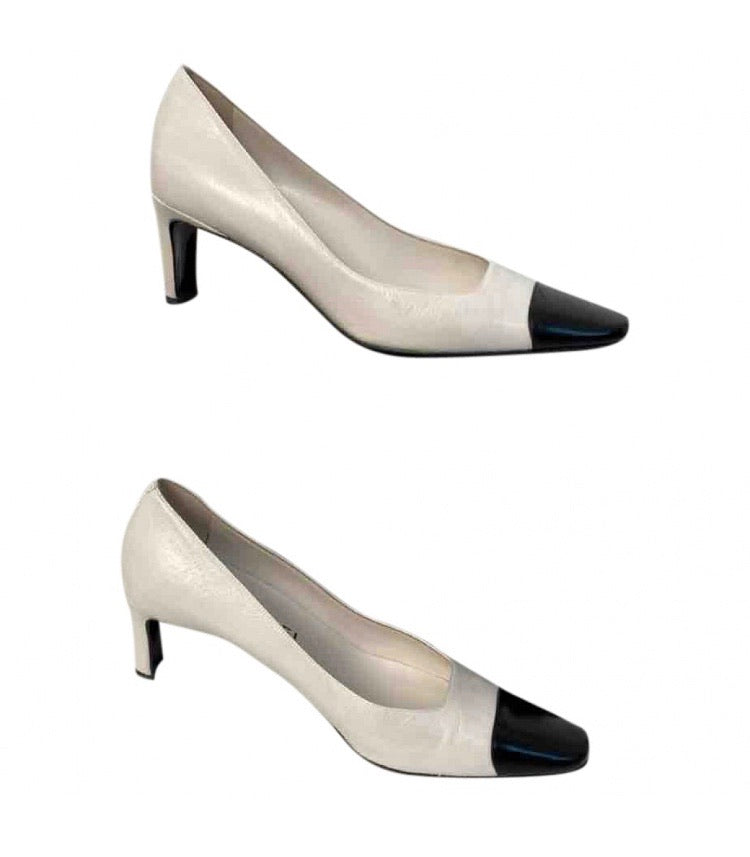 Vintage Classic Chanel White Black Leather bicolor Pump Heels EU 38 US 8