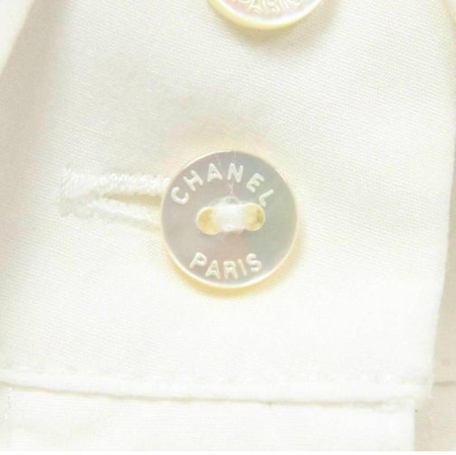 Chanel 05P, 2005 Spring White Cotton Top Blouse Pleated Front FR 42