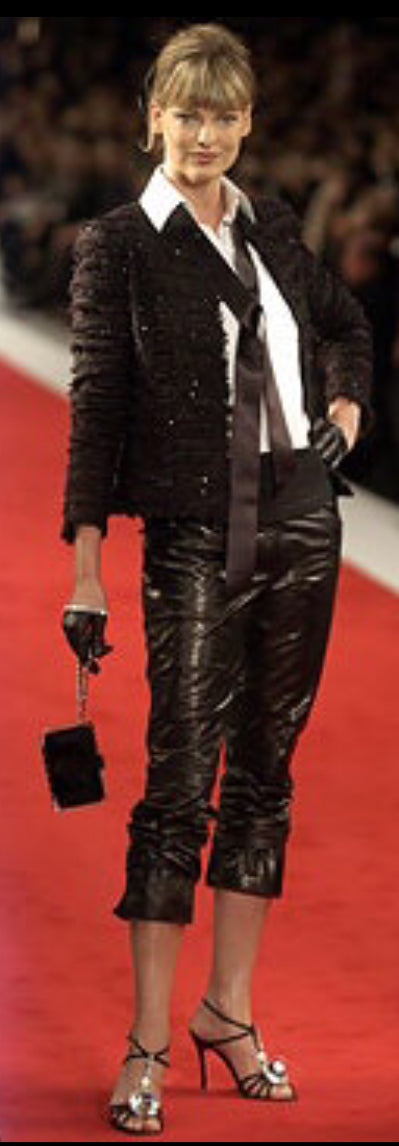 Shown with a Chanel denim jacket and gold pants sold separately under "jackets" and “bottoms” section on this website.