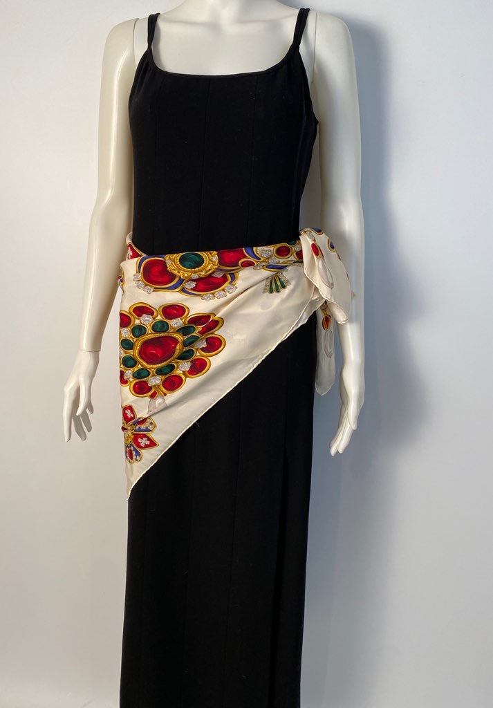 Large Vintage Chanel Jewel Multicolor Print Silk Scarf