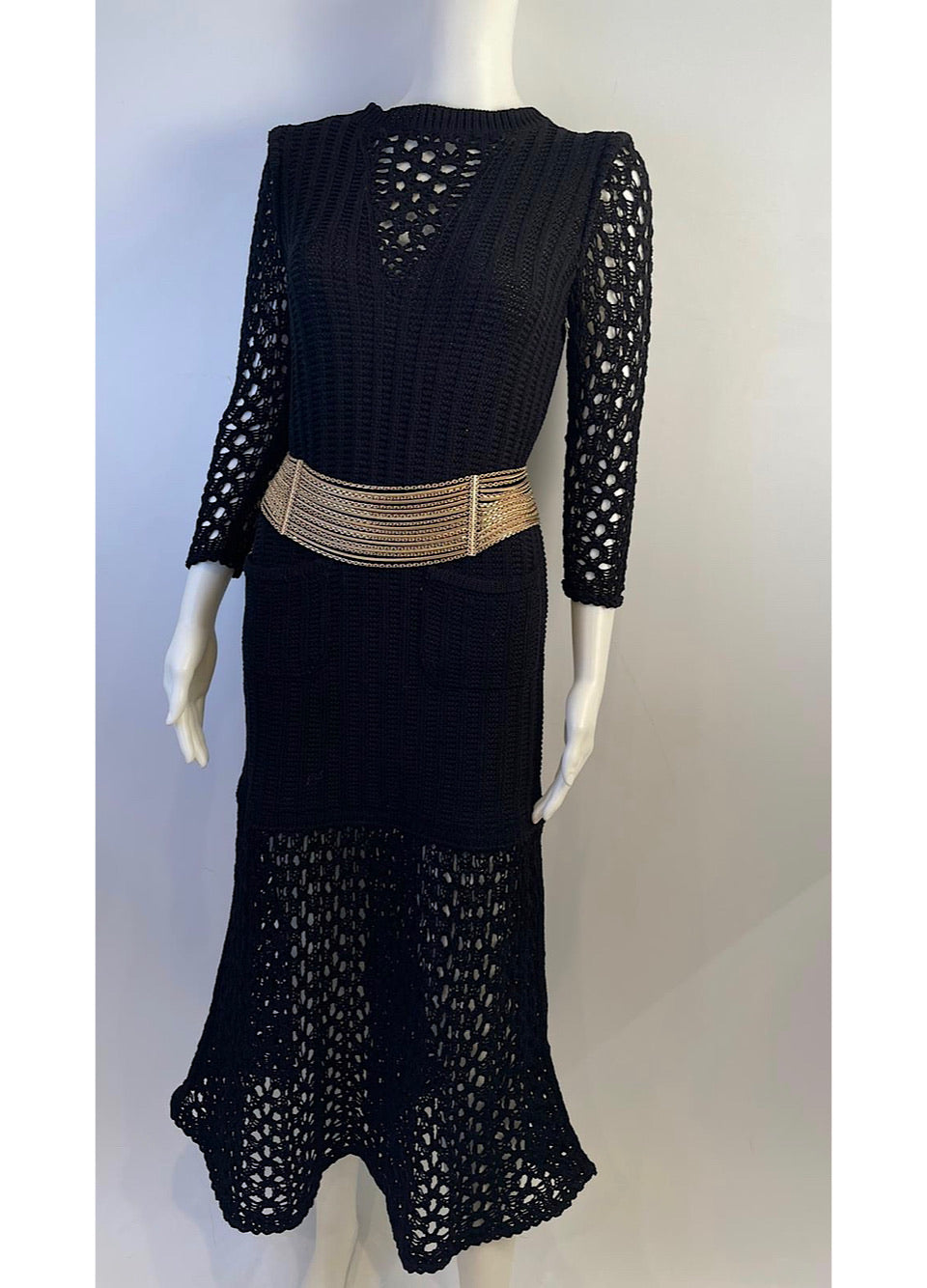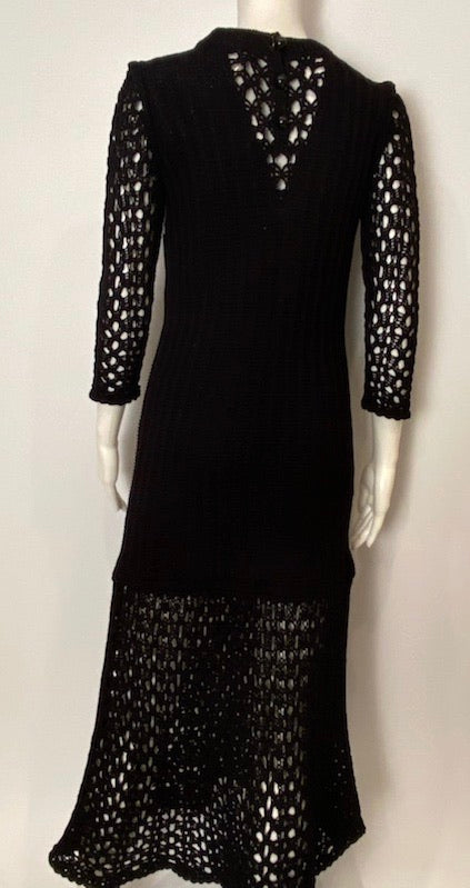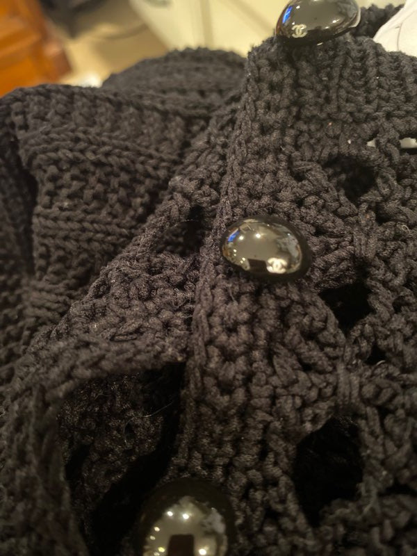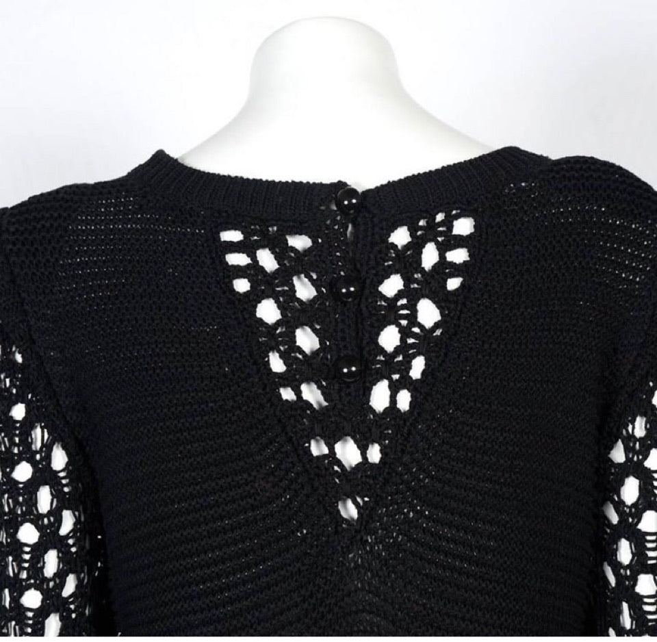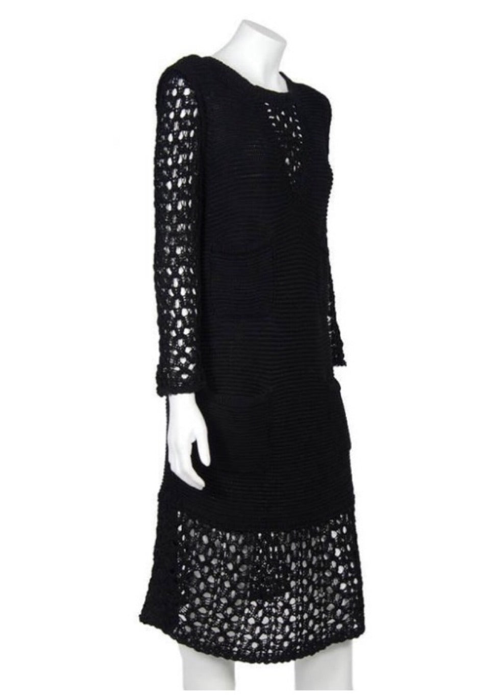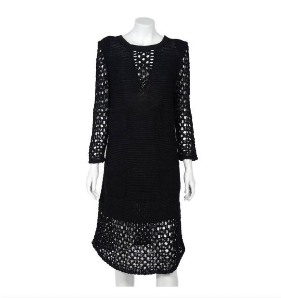 Chanel 14P, 2014 Spring collection black crochet maxi dress. There are 3 black buttons at the back